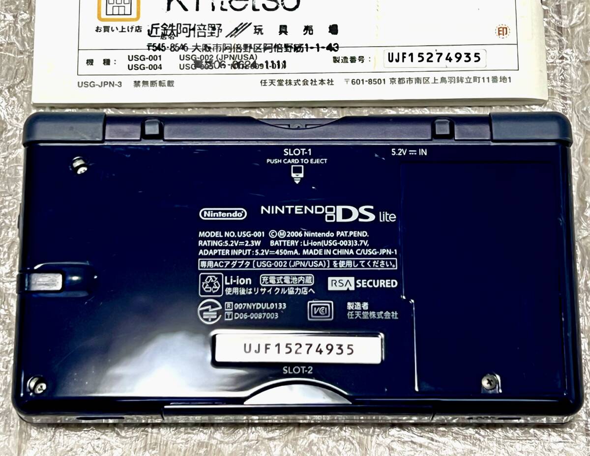 〈美品・画面無傷・動作確認済み〉ニンテンドーDS Lite 本体 エナメルネイビー USG-001 NINTENDO 充電器