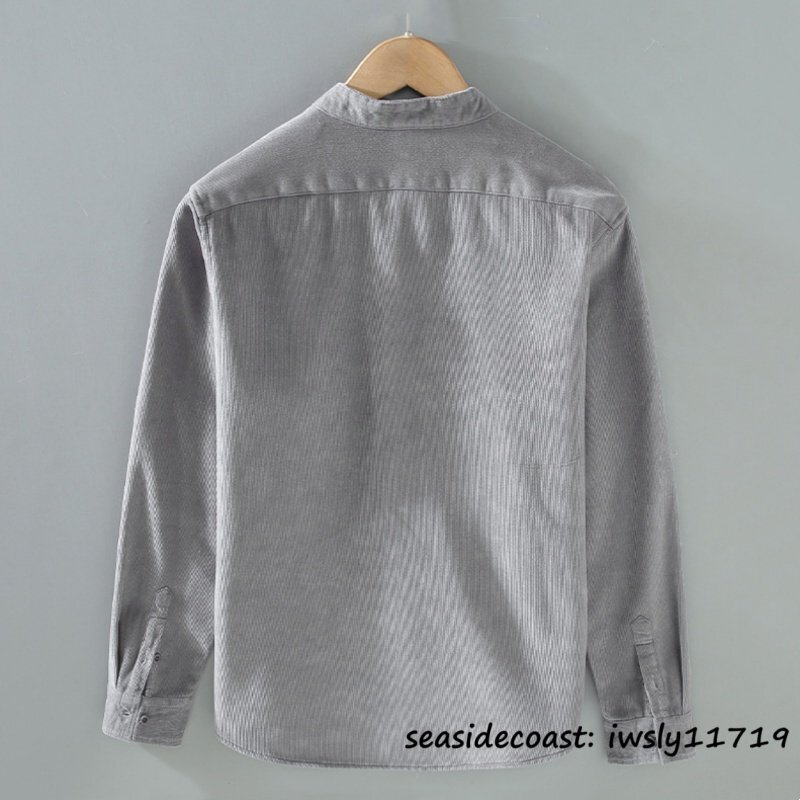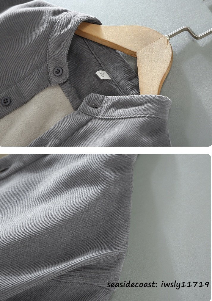 秋冬新品*長袖シャツ メンズ 裏起毛 立ち襟 無地 厚手 ボアライニング 暖かい コーデュロイシャツ 紳士 カジュアル 心地良し カーキ 2XL