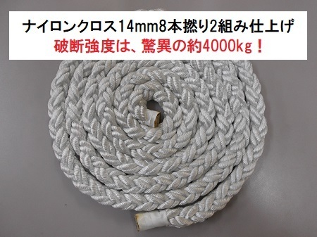 14mm8本撚りの2組ナイロンクロスは、破断強度が約4000kg!