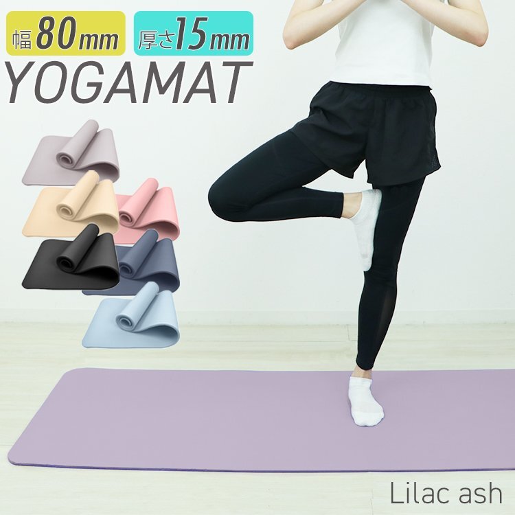 ヨガマット トレーニングマット ピラティスマット 15mm ライラックアッシュ 180×80㎝ 幅広 大きめトレーニング ダイエット 新品 未使用
