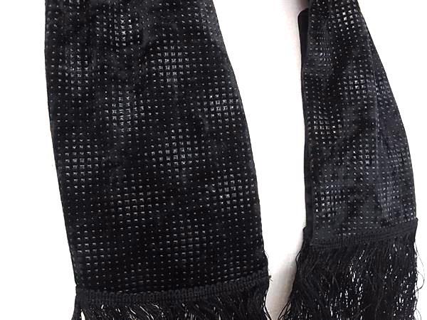 ■極美品■ GIVENCHY ジバンシィ アセテート70%×ポリエステル30% フリンジ ストール マフラー レディース ブラック系 DI2485