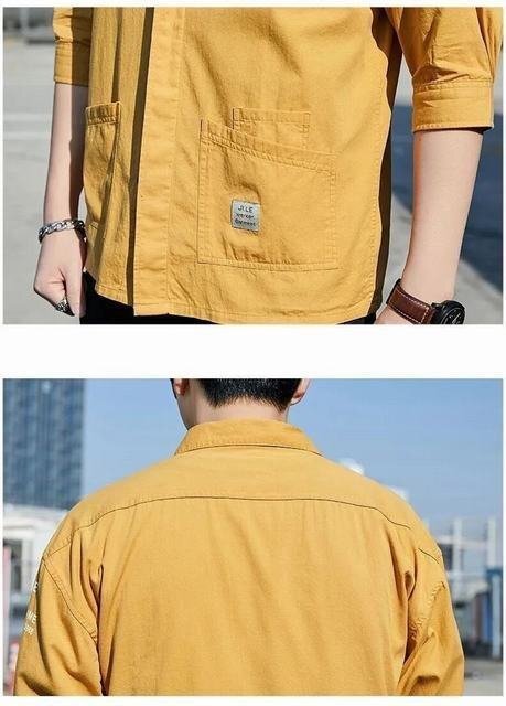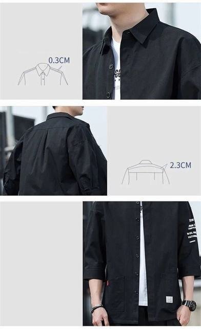 七分袖 シャツ 中袖シャツ オープンシャツ メンズ ワークシャツ トップス 薄手 涼しい 夏服 部屋着 お兄系 春夏 ブラック XL