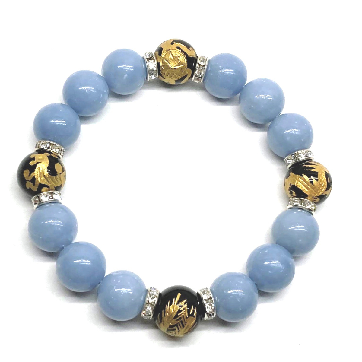 こちらは、四神獣金彫オニキとエンジェライトを組み合わせたパワーストーンブレスレットです。四神獣は、中国の伝説で4つの方向(東西南北)を守護する神聖な神。四神獣、厄災から身を守り、多くの運気を呼び込むと言われております。石大きさは程よくインパクトのある12mm玉で内周 約17cmです。 数に限りがございますので気になる方はお早めにどうぞ。