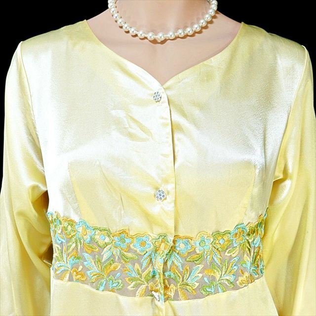 ● 生地の状態:良好です。 ● サイズ:バスト96 丈約113 ● 素材:ポリエステル100% ● ストレッチ:なし |