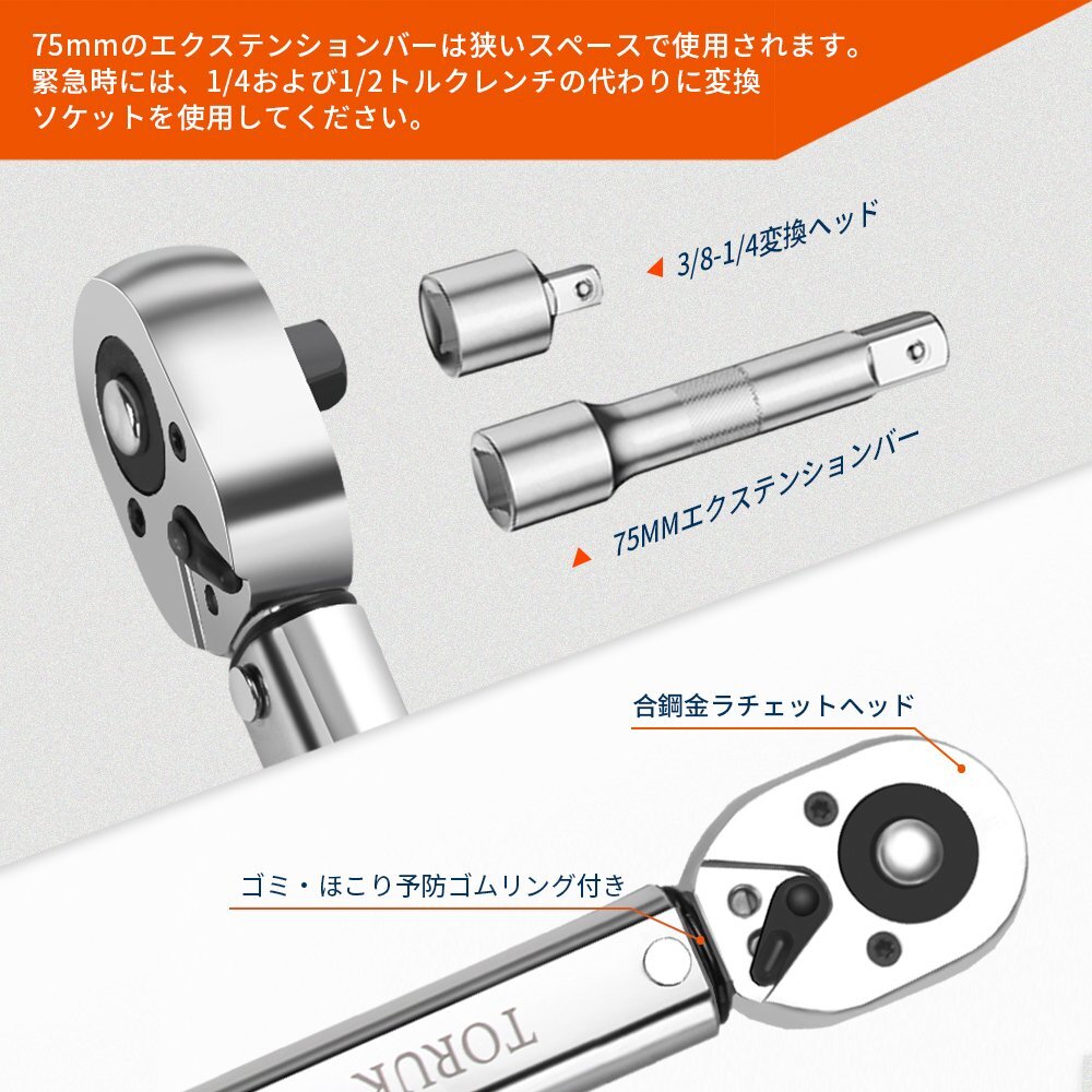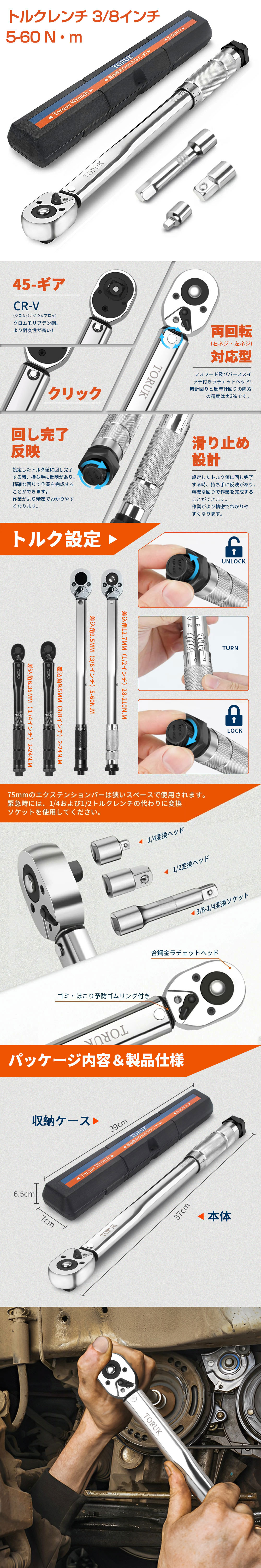 ◆【商品内容】: トルクレンチ本体、1/4/変換ソケット 差込角: 3/8インチ エクステンションバー ◆【信頼性と高精度】: 精度は±5%以内でDIN-ISO-6789(国際標準)を満たします。各レンチには検証コードがあり、日常使用には信頼性が高く正確です。 ◆【正逆転&読みやすいスケール】: 作動トルクの安定性を調整した後、ロックできます。正逆転可能なヘッドなので、非常に便利です。設置目盛もほかのレンチよりもっと高精度、細工も精巧でトルク変更、によって容易に行えます。 ◆【品質保証と使いやすい】: 耐久性の抜群である ◆【本体】: カーボンスチール・スチール / 【ソケット・エクステンションバー】クロームバナジウムを採用し、防錆で十分に丈夫である。ハンドルは防錆および滑り止めのためのナーリングなので、握り心地が良くて、使いやすいです。 ◆【目盛】: はっきりと読みやすい。目盛によってトルク変更は容易に行え! ◆トルク設定範囲:5~60N・m ◆ 密閉構造でホコリの侵入が少なく長期間にわたり高精度を保ちます。 【保証】 ◆当商品は12っヶ月保証となります。 ◆お届けから1週間以内にご連絡のあった不良品の保証対応の送料は当方が負担いたします。 ◆保証期間内の不良品ですが、交換のみ対応しております。往復送料はお客様負担となります。在庫がない時だけ返金しますので、ご了承ください。 |