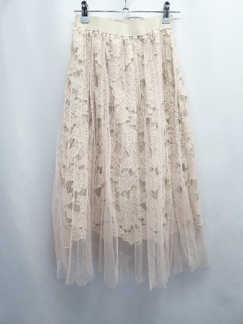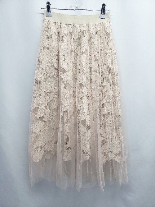 ◇ ⊂ Grandeir グランディール レース 膝下丈 チュール スカート サイズ表記なし ベージュ系 レディース E