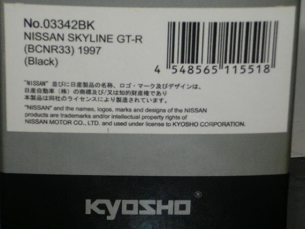 ☆1/43 京商 NISSAN SKYLINE GT-R (BCNR33) 1997 黒です。箱やケースに少し傷みがありますので、ご了承の上入札ください。商品の状況は写真でご判断の上、ノ-クレ-ム・ノ-リタ-ンでお願いします。保証はできませんが、定形外郵便での発送も可能です。