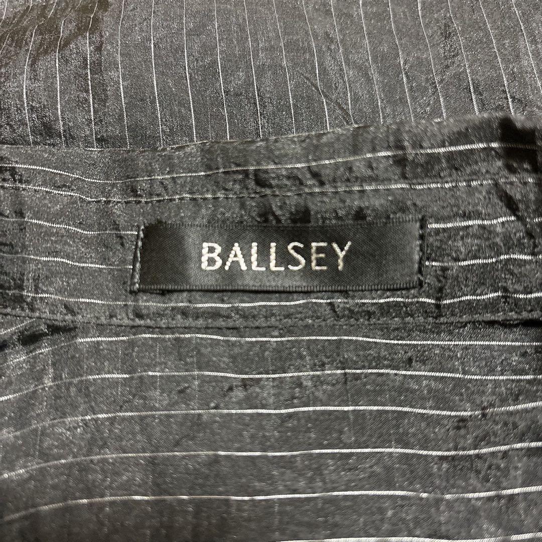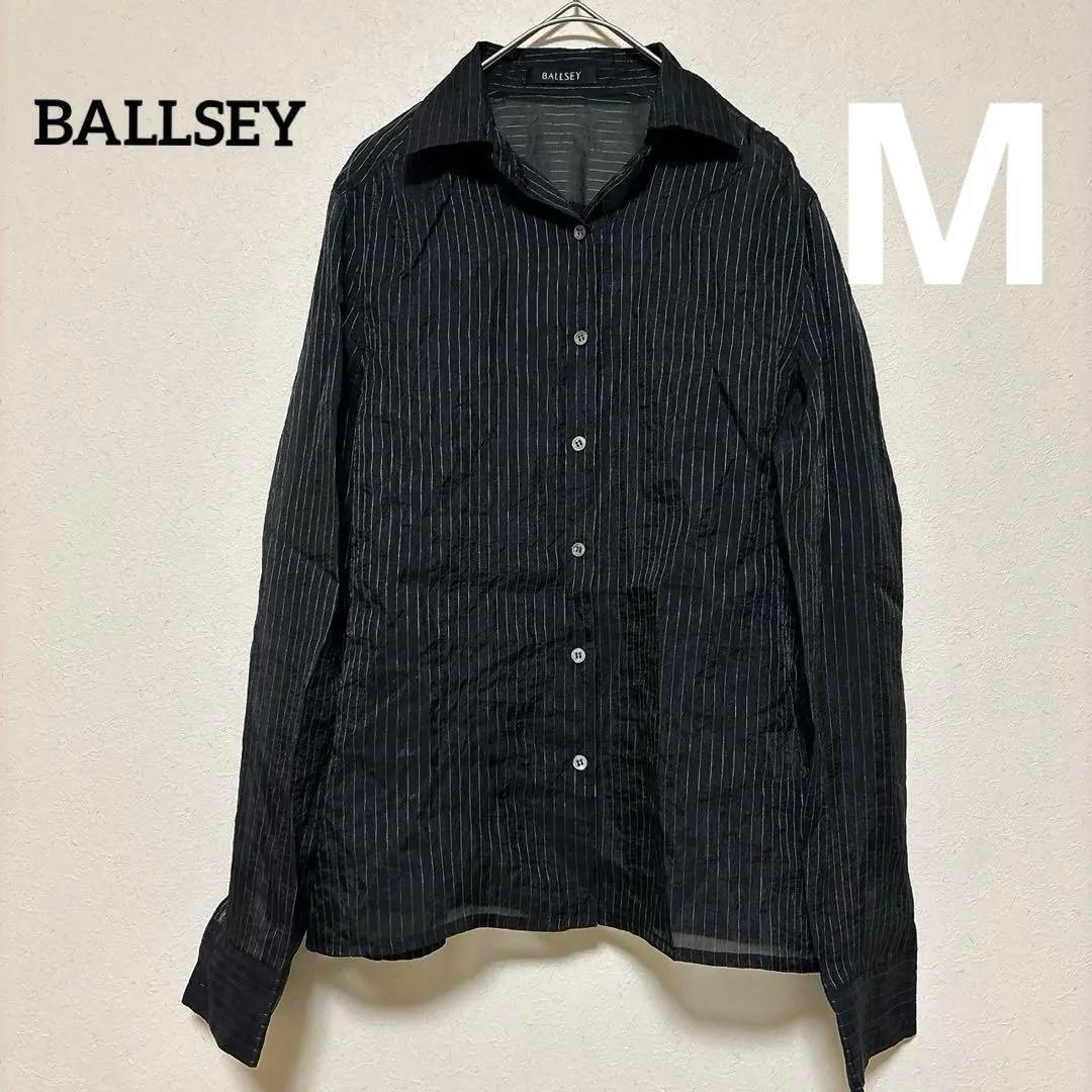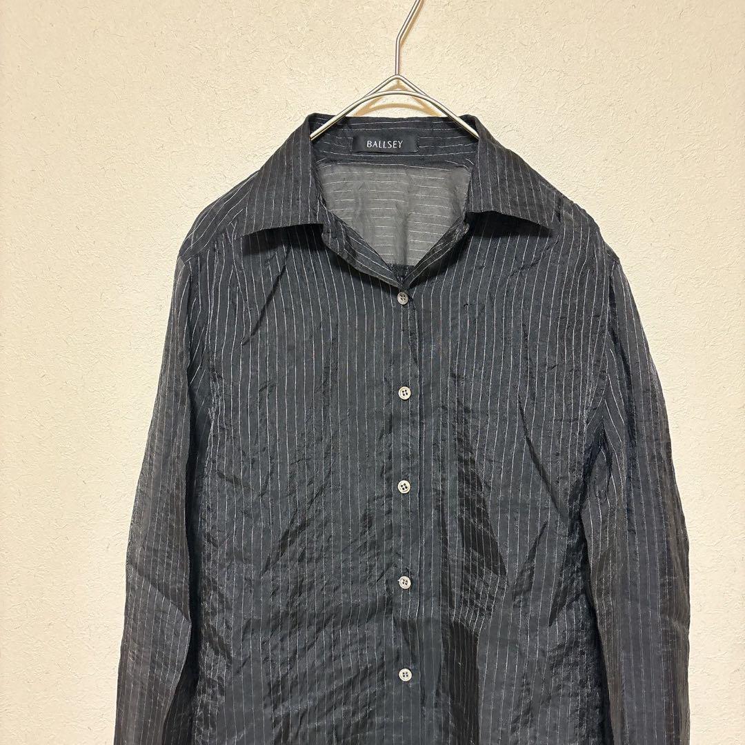 【ボールジー】BALLSEY ストライプ シルク混 長袖シャツブラック M相当 FF2777