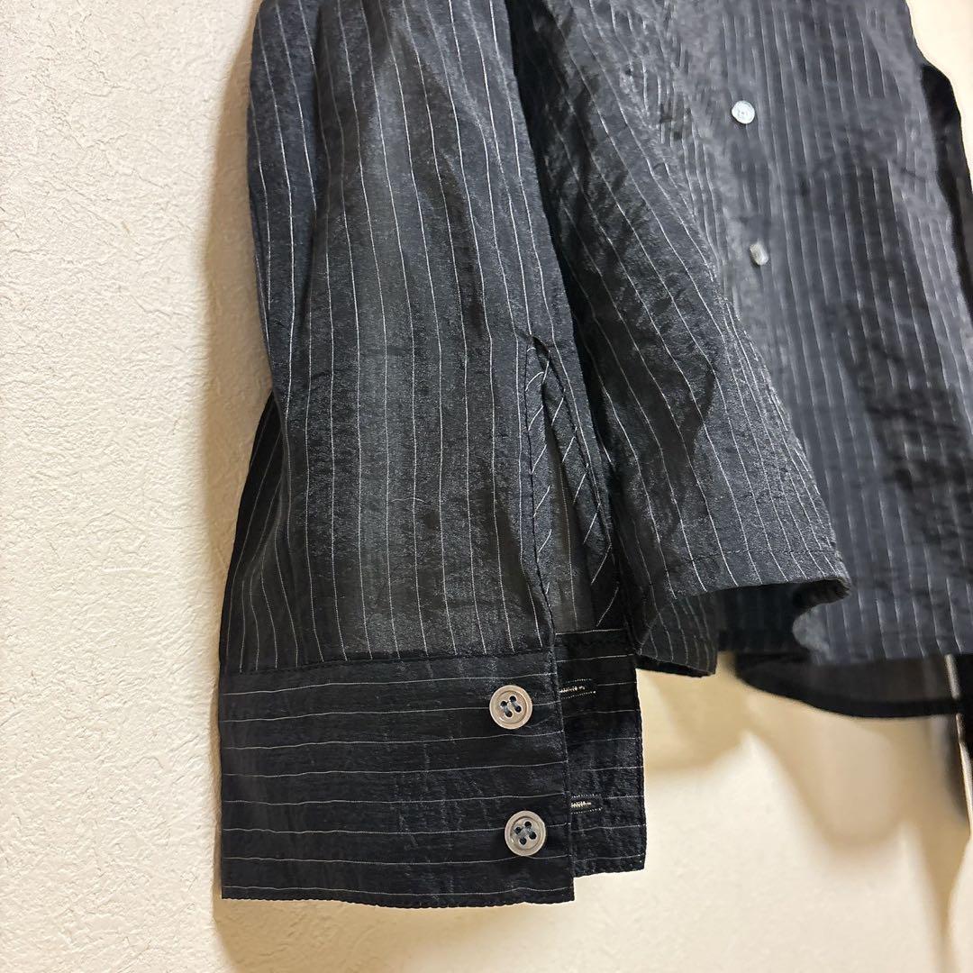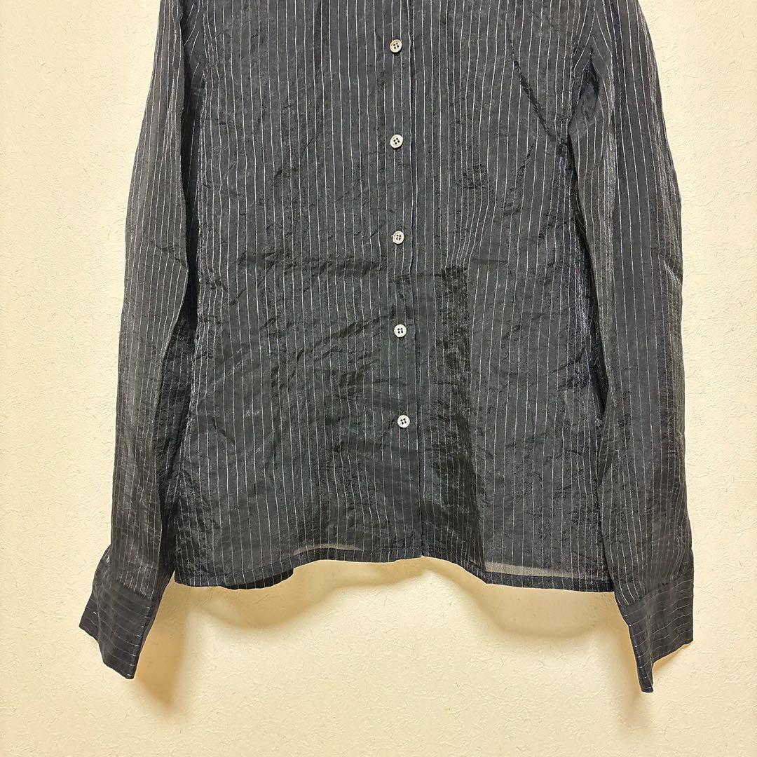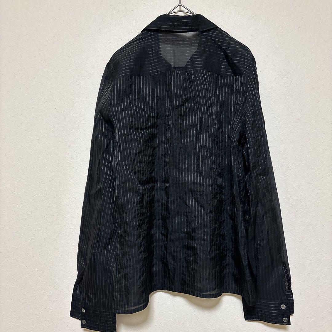【ボールジー】BALLSEY ストライプ シルク混 長袖シャツブラック M相当 FF2777