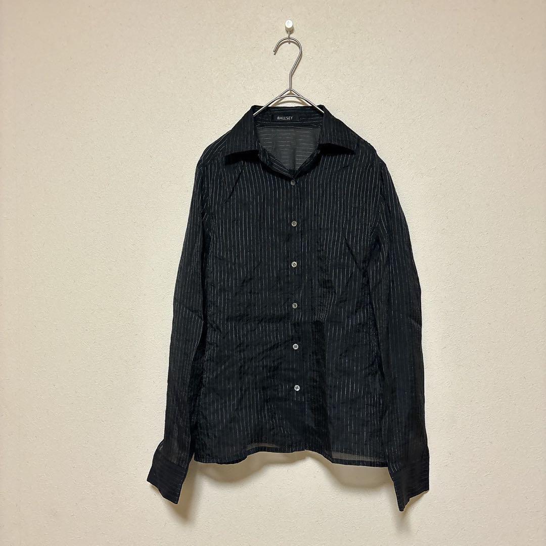 #BALLSEY #ボールジー #トゥモローランド #シャツ #長袖シャツ #ストライプ #ブラック #シルク混 #オフィスカジュアル #Mサイズ相当