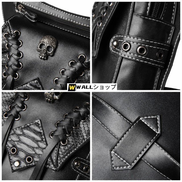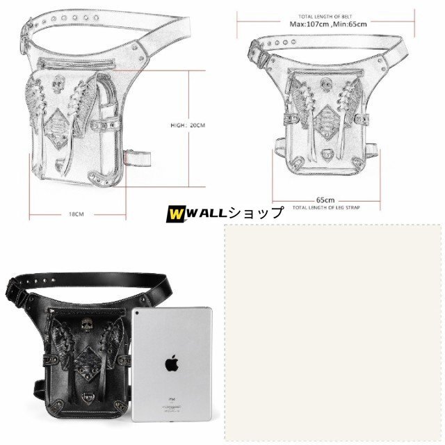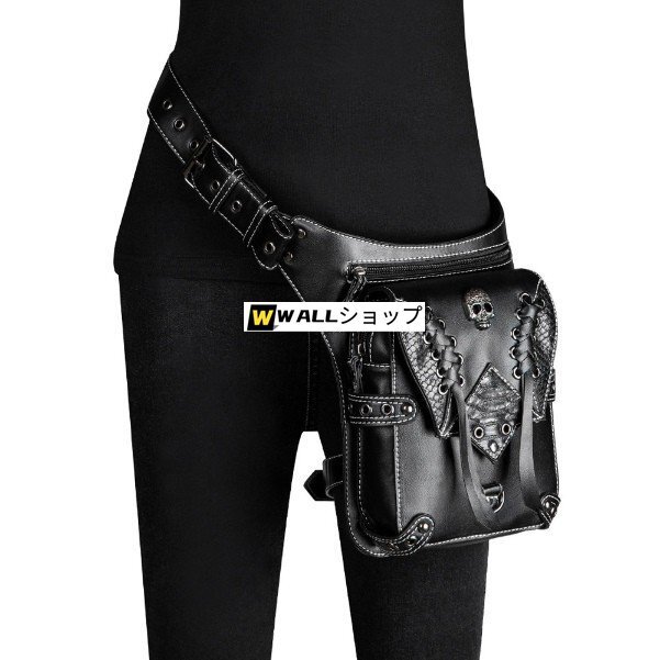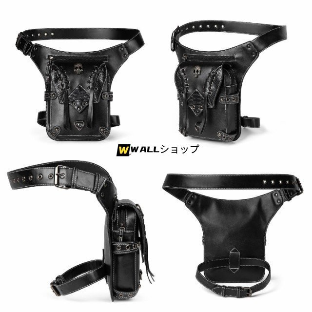ホルスターバッグ スカルスタッズ ウエストポーチ パンク風 かばん 鞄 レッグベルト バイカー ツーリング 黒