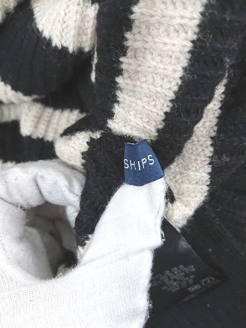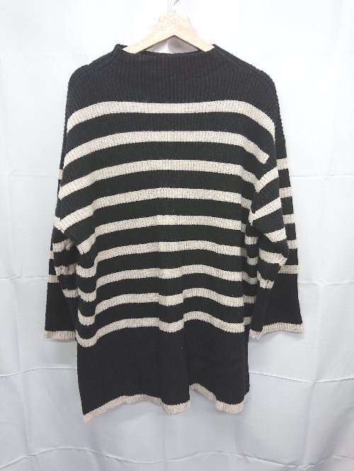 ◇ ⊇ SHIPS シップス ボーダー ハイネック 長袖 ニット セーター サイズM ブラック ライトベージュ系 レディース E