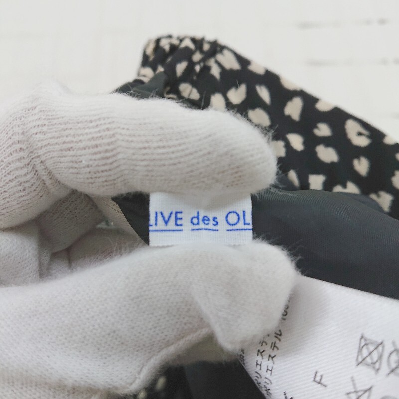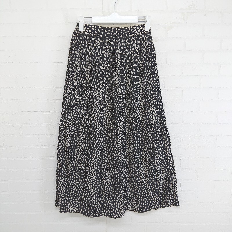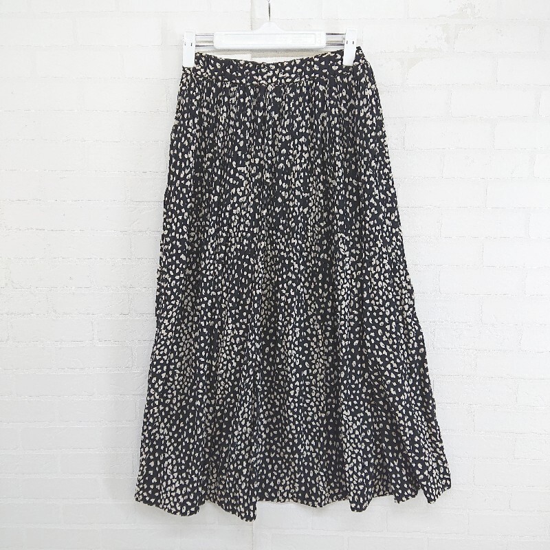 ◇ OLIVE des OLIVE オリーブ デ オリーブ 総柄 ロング プリーツ スカート サイズF ブラック ベージュ系 レディース E
