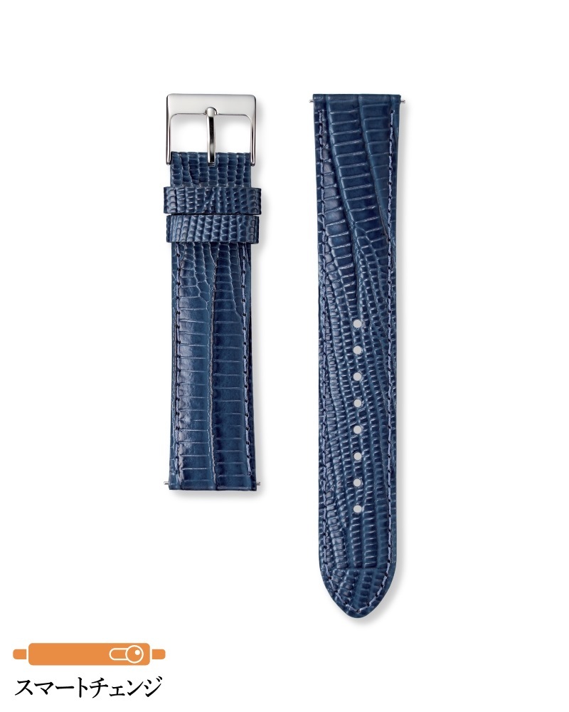 トカゲのうち、長方形の斑柄が特徴のテジューを型押しした牛皮革バンドです。風変わりな個性あふれる型押しです。