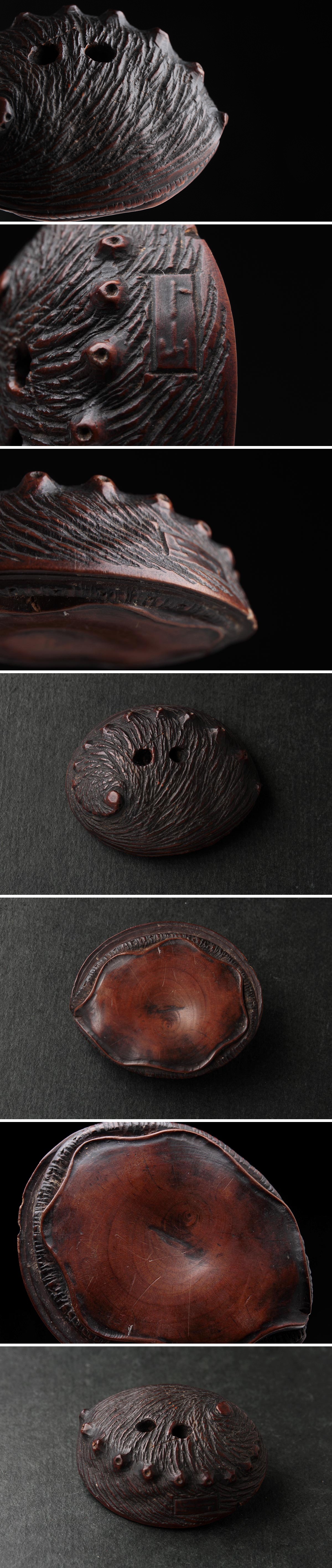 | ◆ 時代提げ物【ト山 銘】黄楊木/柘植「鮑」根付 幅4.1cm・形彫根付・あわび根付・古根付 印籠 煙草入 装飾具 古美術 ◆