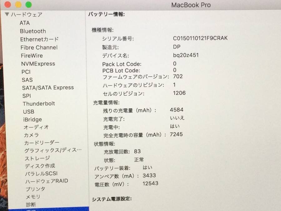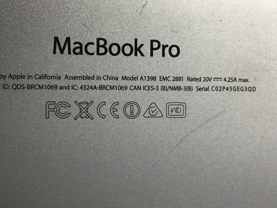 Apple MacBook Pro A1398 macOS Core i7 2.50GHz 16GB 512GB(SSD)■一部保証品