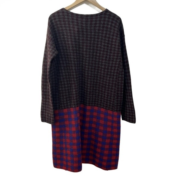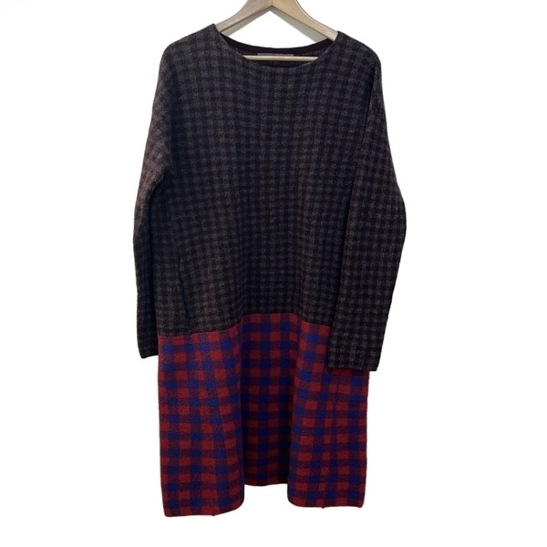フォーティーファイブ・アール 45R サイズ0 XS - パープル×グレー×マルチ レディース 長袖/ロング/ニット/チェック柄 ワンピース