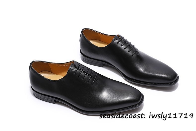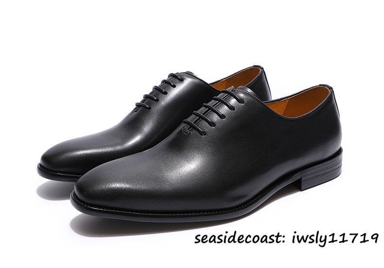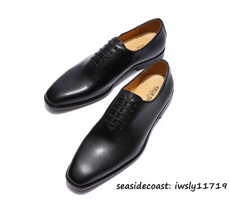 極美品&本牛革 レザーシューズ メンズ ビジネスシューズ 職人手作り 本革 ドレスシューズ 紳士靴 革靴 フォーマル 結婚式 ブラック 24.5cm