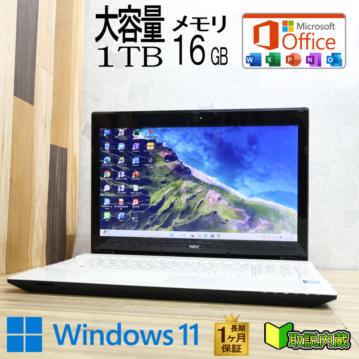 ★美品 高性能7世代i5!大容量1TB メモリ16GB★GN254F Core i5-7200U Webカメラ Win11 MS Office2019 H&B ノートパソコン★P95167