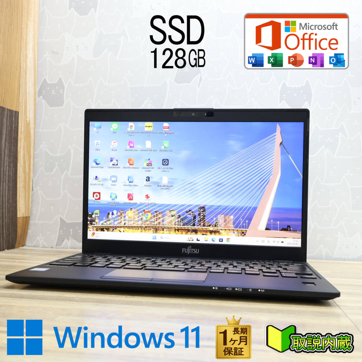★完動品 開けばキレイ 高性能8世代4コアi5!新品SSD128GB★U939/A Core i5-8365U Webカメラ Win11 MS Office ノートパソコン★P94697