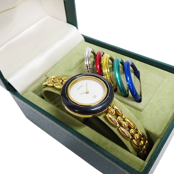 【モデル】チェンジベゼル 【素材】ゴールドGP 【ムーブメント】クォーツ 【文字盤】ホワイト文字盤 【ケースサイズ】約W26.0mm(ラグ・リューズ除く) 【ベルトサイズ】約16.0cm 【付属品】箱・替えベゼル5色・コマ×2 【コンディション】中古 【商品ID】FL-FL-2579 【状態コメント】 ケース・ベゼル・ブレスに細かな小傷が見受けられます。 風防は細かなスレ傷が見受けられます。 ※2025年12月電池交換済み | ||||