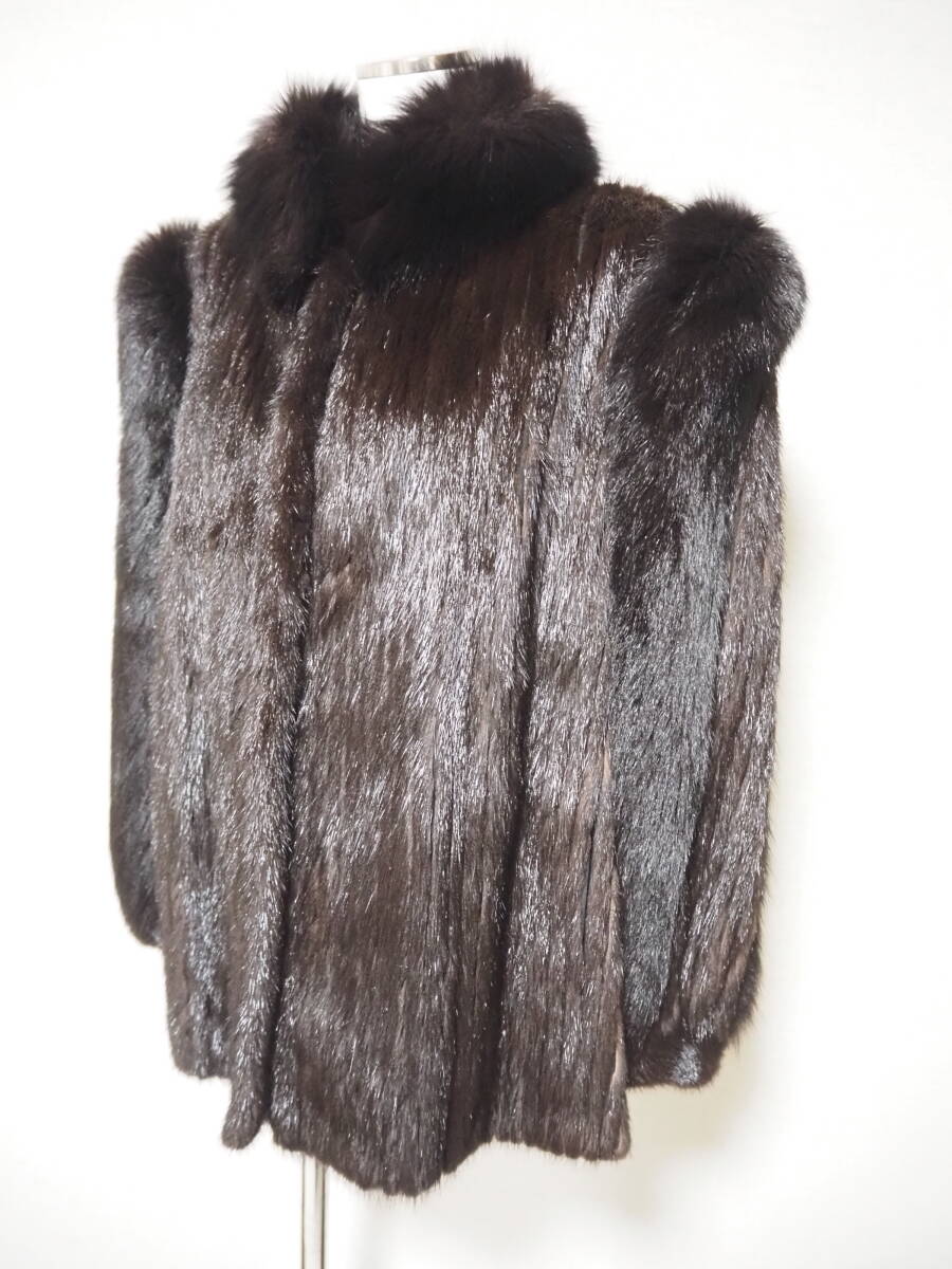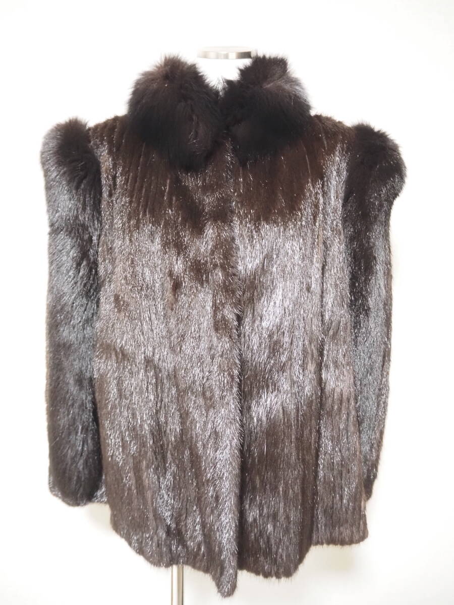 ■ダークミンク×フォックス■ハーフコート■着丈65㎝■SAGAシルバー■