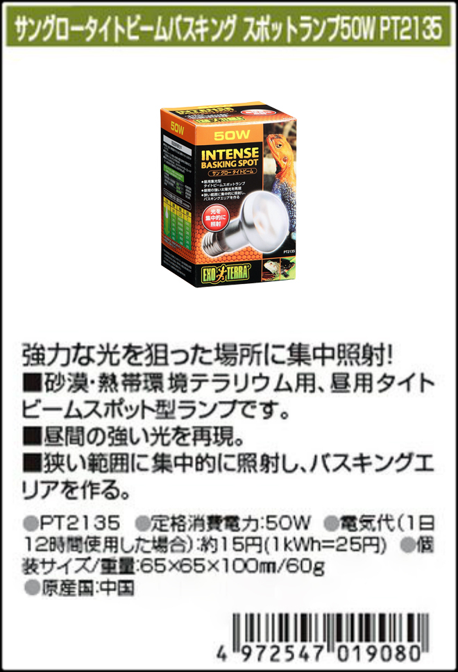 ☆ サングロータイトビームバスキングスポットランプ50W エキゾテラ 爬虫類用保温球/レフ球 消費税0円 新品価格 ☆
