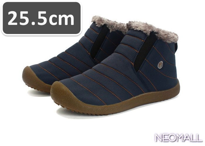 ユニセックス スノーシューズ 【868】 25.5cm ネイビー ムートンブーツ スニーカー ウィンターブーツ 裏起毛 防水 防寒 防滑 冬用靴 綿靴
