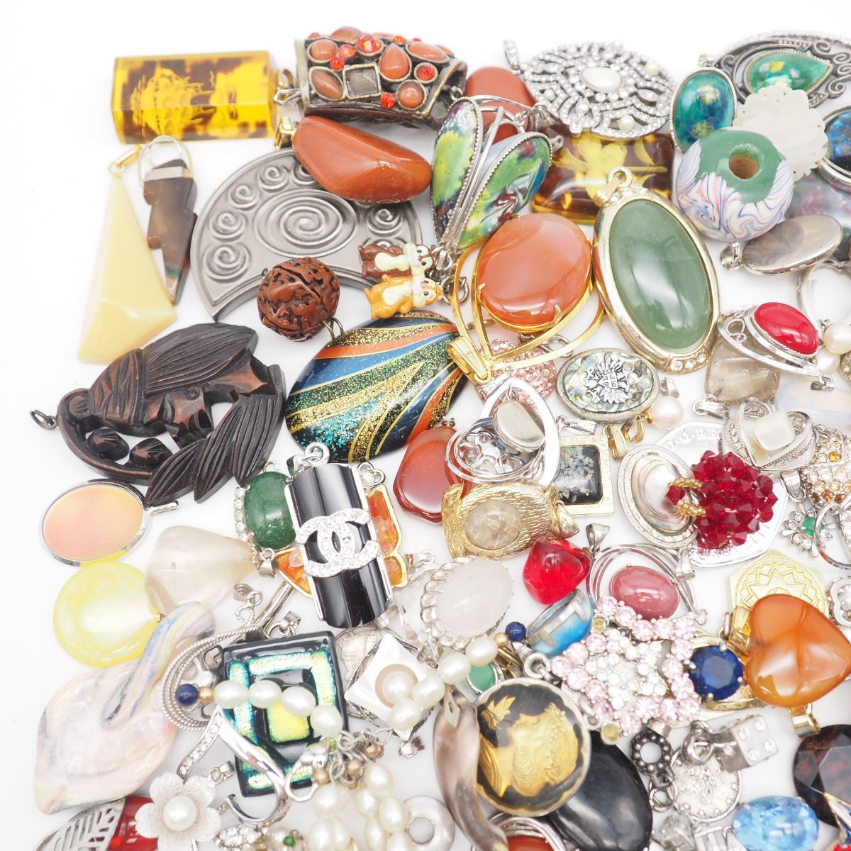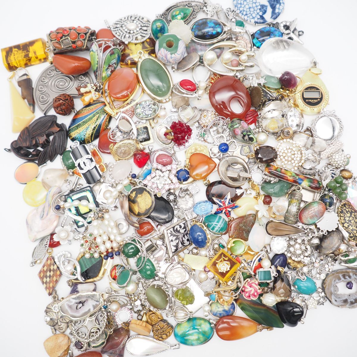 PH1119 1円 ペンダント チャーム 大量セット 約1kg 真珠 カラーストーン 多数 トップ ヘッド アクセサリー ジャンク