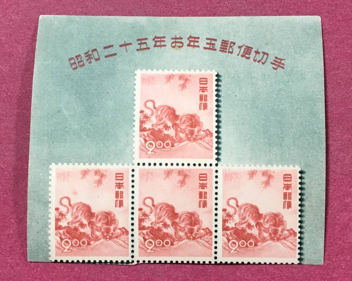 お年玉年賀切手 昭和25年 応挙の虎 とら 円山応挙 シートくずれ 2円 未使用品