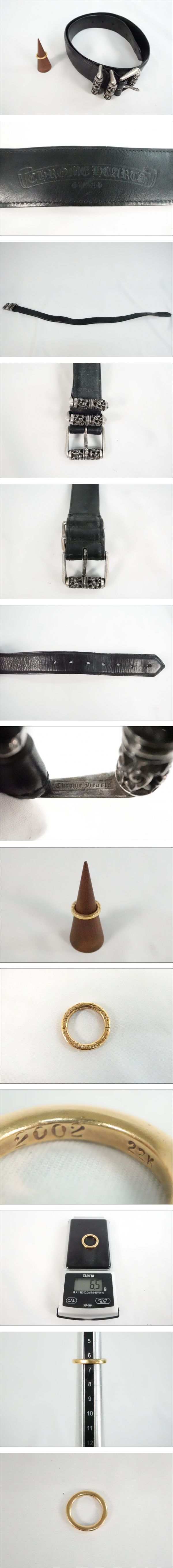 メーカー名:Chrome Hearts 商品名: ①NTMFリング ②ケルティックローラーベルト 2点まとめ 型番: ①22K ② 925 サイズ:①6号 ②ベルトサイズ32 付属品:無 状態:譲り受けた商品の為、購入時期や使用頻度など詳細は分かりかねます。 傷や汚れ、変色がございます。 素人の目視確認の為、見落としがある場合もございます。 素人の為、ご質問いただいても回答できない場合がございますが、 画像を追加致しますので、欲しい写真があった場合ご質問頂ければと思います。 ID:0002802025-1211-02 弊社はインボイス登録事業者です。 登録番号:T8370001039877 ※※入札前に必ずお読みください※※ 説明文をよくお読みの上ご入札下さい。 画像に写っているものが全てになります。 商品の重さを量っているものに関しては多少の誤差がありますので、ご理解下さい。 商品の状態に関してはご自身でご判断の上、ご入札下さい。 あくまでも主観に基づく感想です。状態判断は画像にてお願い致します。 商品に対しどちらの情報が欲しいか分かりかねる部分もございますので、落札前にご質問頂ければと思います。 中古品の為、神経質な方のご入札はお控え下さい。 ご入札後の入札取り消しは出来かねます。 専門知識がなく、ご質問いただいても回答できない場合がありますが 気になる点がある方は入札前にご質問下さい。 素人による検品の為、見落としている場合もございます。 ご了承下さい。 ノークレーム・ノーリターンでお願いします。 | |||