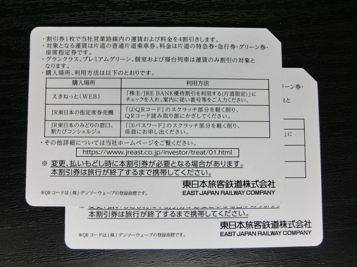 ◆送料込◆JR東日本 株主優待割引券 4割引 2枚◆有効期限2026/6/30◆