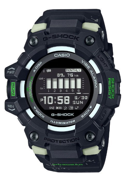 また、ブルーツース接続による自動時刻修正や通知機能、歩数計測機能など、多機能を日常的に使用した際でも、約2年の電池寿命を実現。ライフスタイルに役立つ性能も身につけました。日常の健康管理からランニングの持久力強化まで、幅広く役立つG-SQUADのNewモデルの登場です。