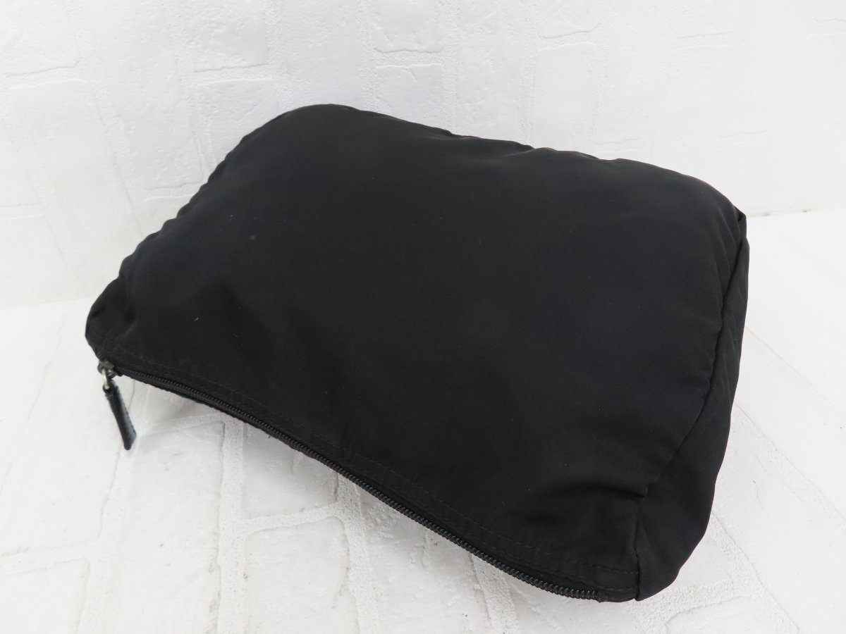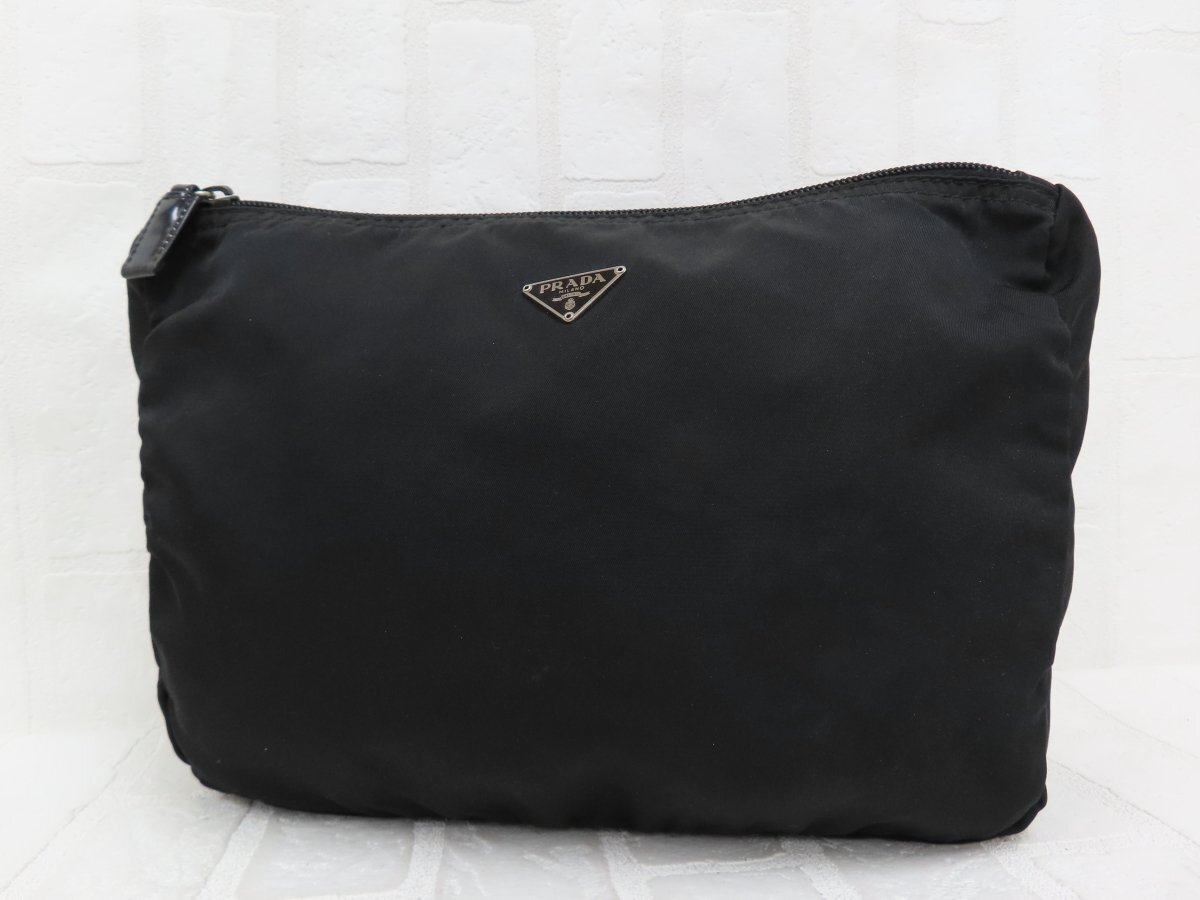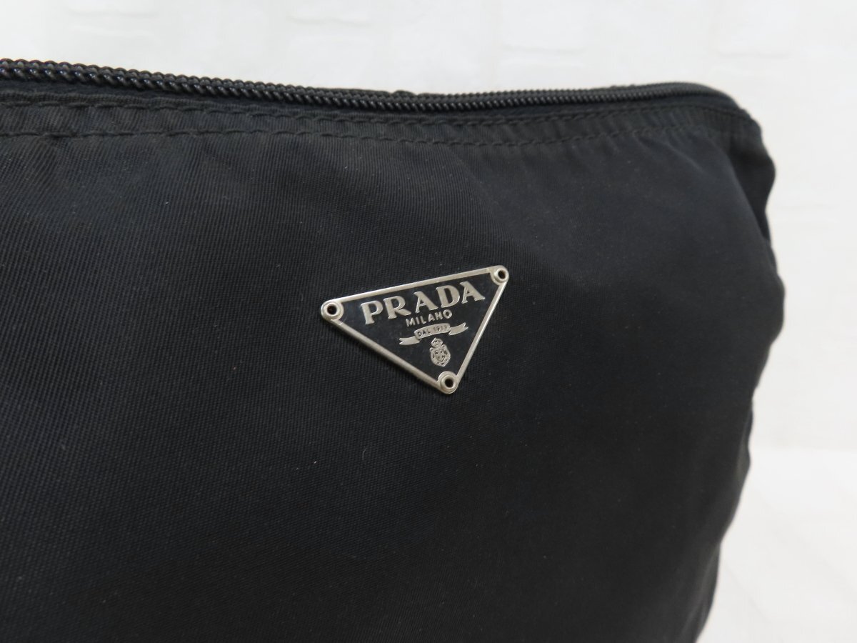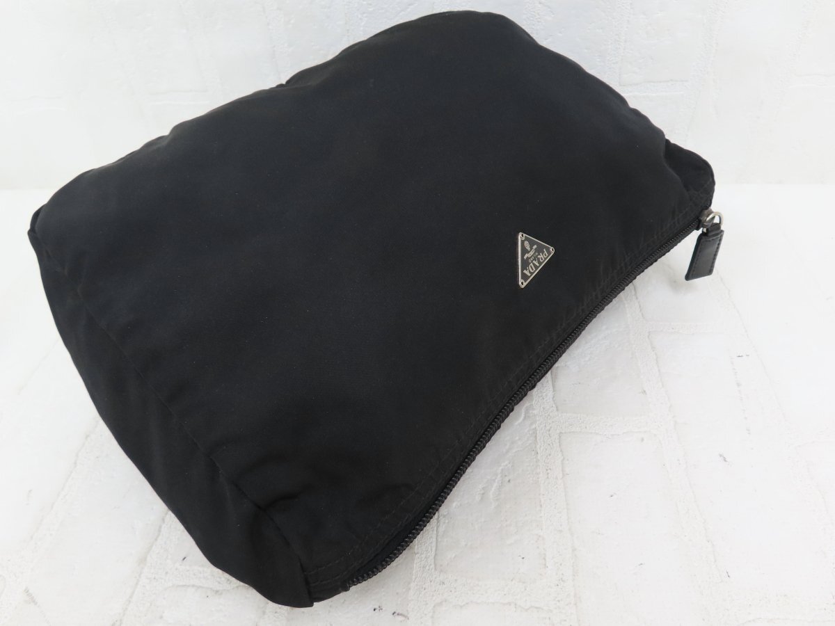 ◆超美品◆PRADA プラダ◆ナイロン カーフ レザー 本革◆ポーチ◆ブラック シルバー金具◆イタリア製◆三角ロゴプレート◆A14575