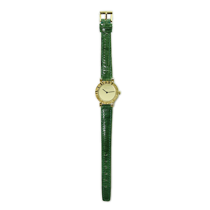 | 商品説明 | ティファニーのロングセラー アトラスコレクションは、アトラスクロックからインスピレーションを得て生まれたコレクションで「永遠の時を刻む」という意味が込められています。 こちらは、K18製、ケースサイズ24mmの人気モデルです。純正のグリーンのリザードベルトとのカラーバランスが良く、シンプルなデザインながら上品な雰囲気のある腕時計です。 |