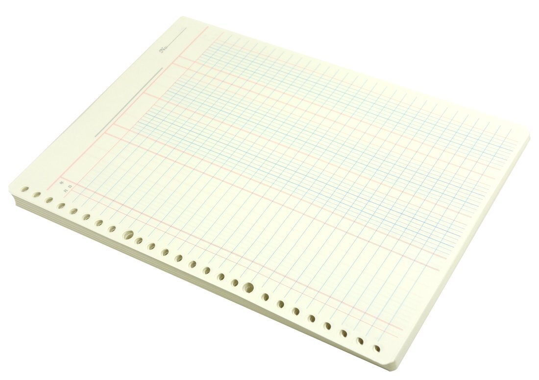 ●B5サイズ相当のリーフ「応用帳」です。 ●ルーズリーフ用に漉(す)かれた紙を採用しているため、記帳の際に目が疲れず、インクのにじまないペン滑りの快適な手書き用リーフです。 ●罫内容は帳簿と同じく三色刷りのため、区分が明瞭で楽に記帳できます。