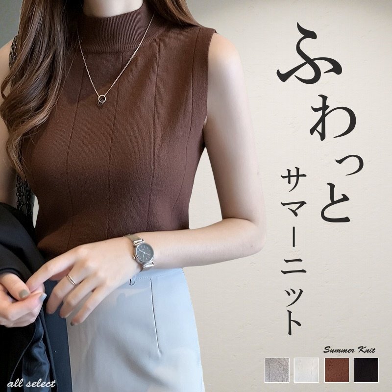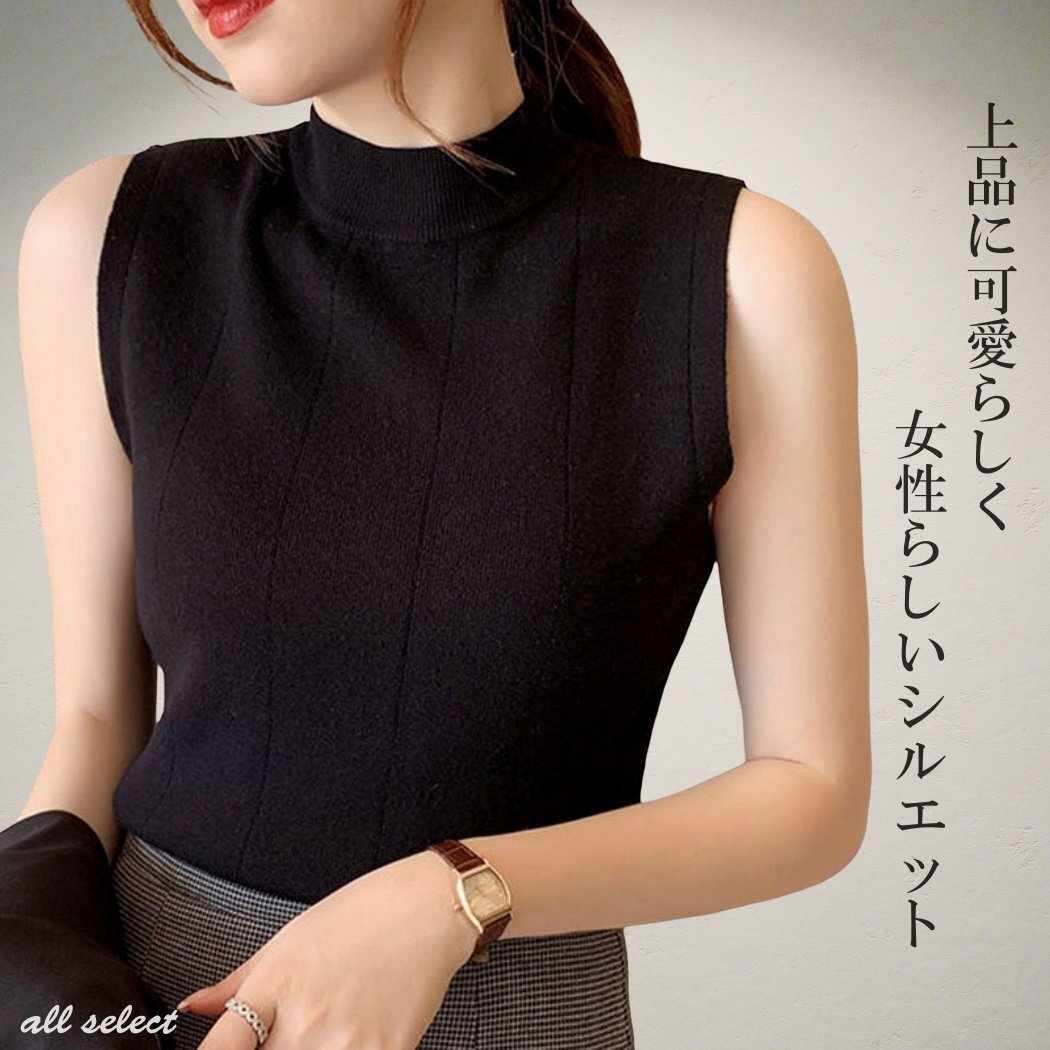 ●ハイネックが上品な雰囲気を醸すノースリーブニットです。