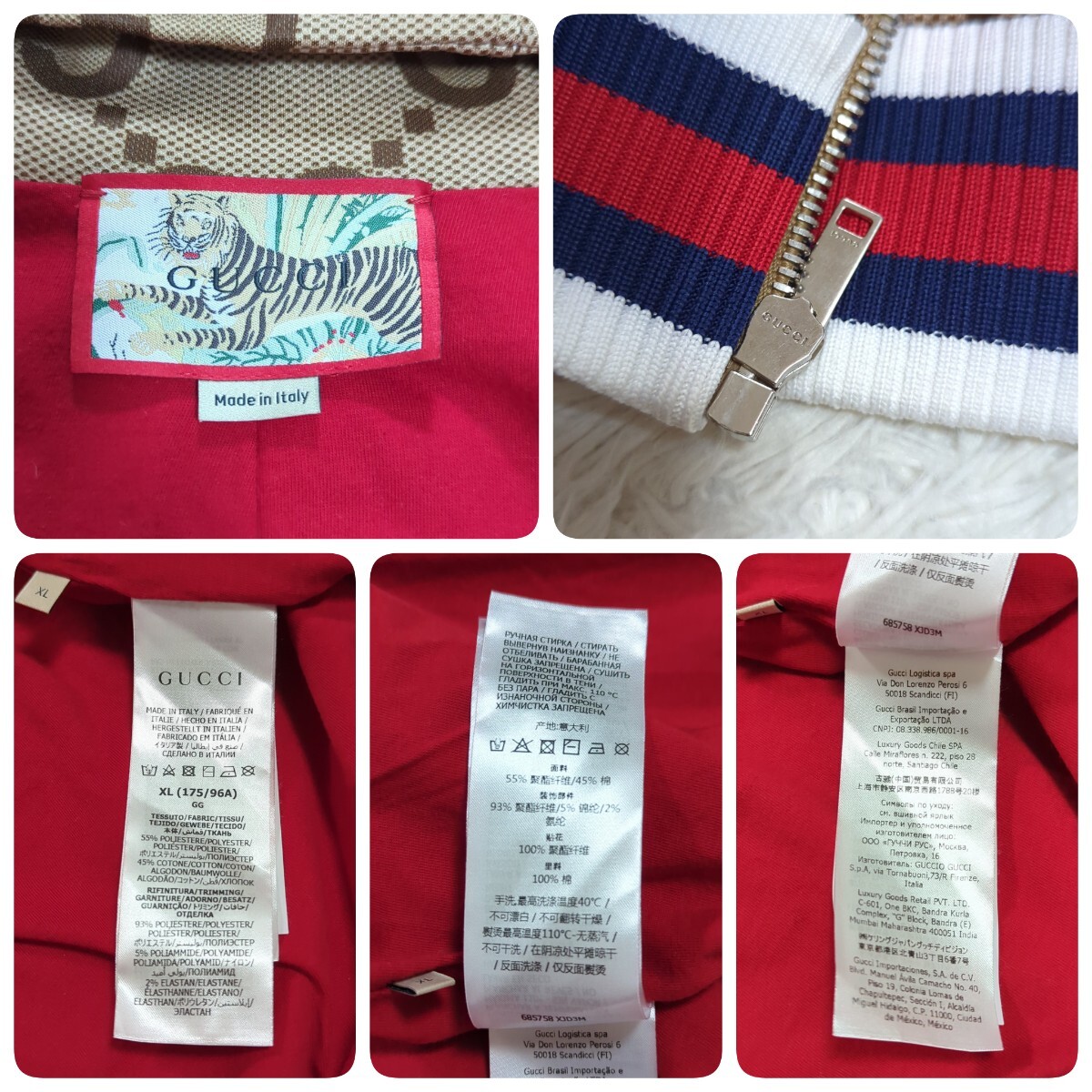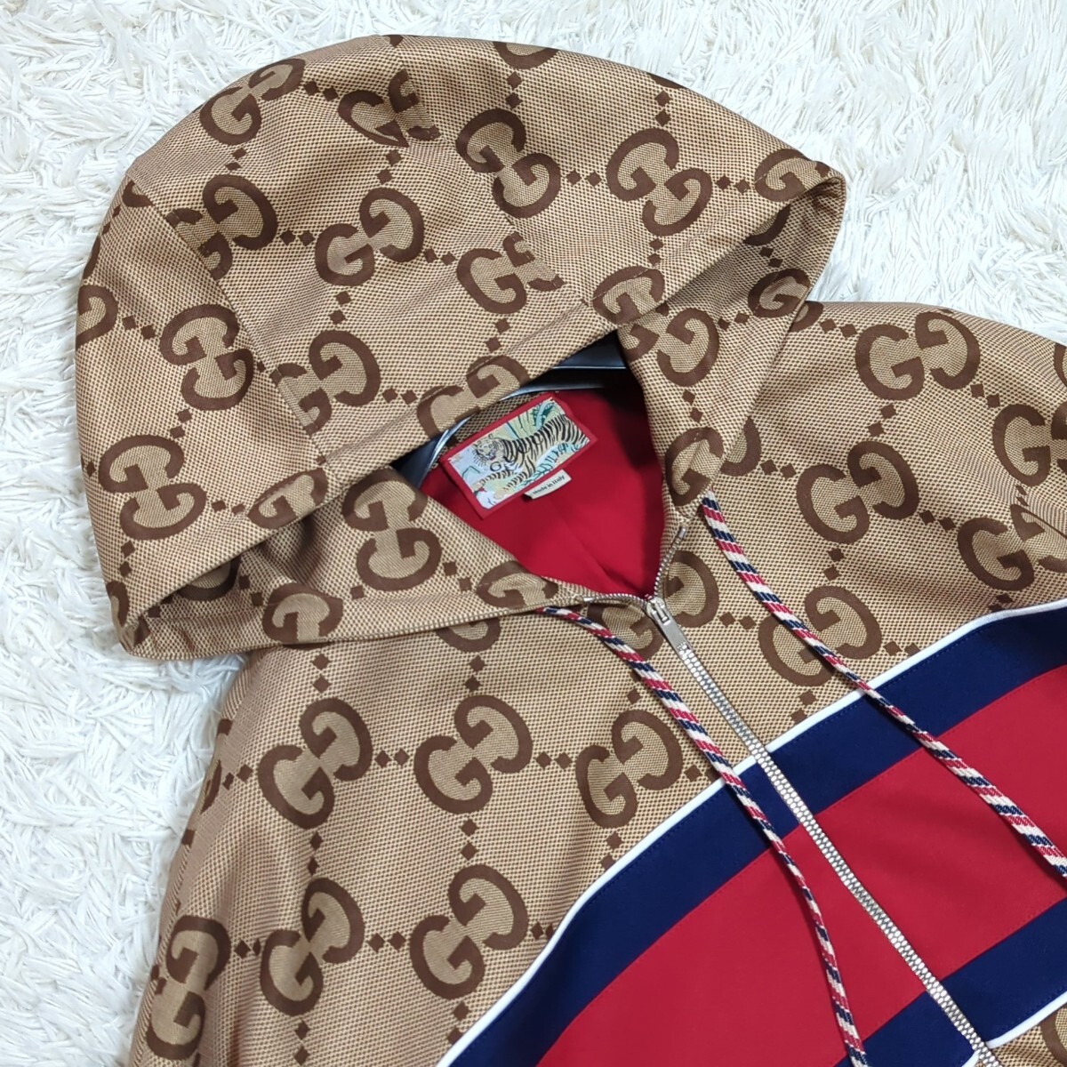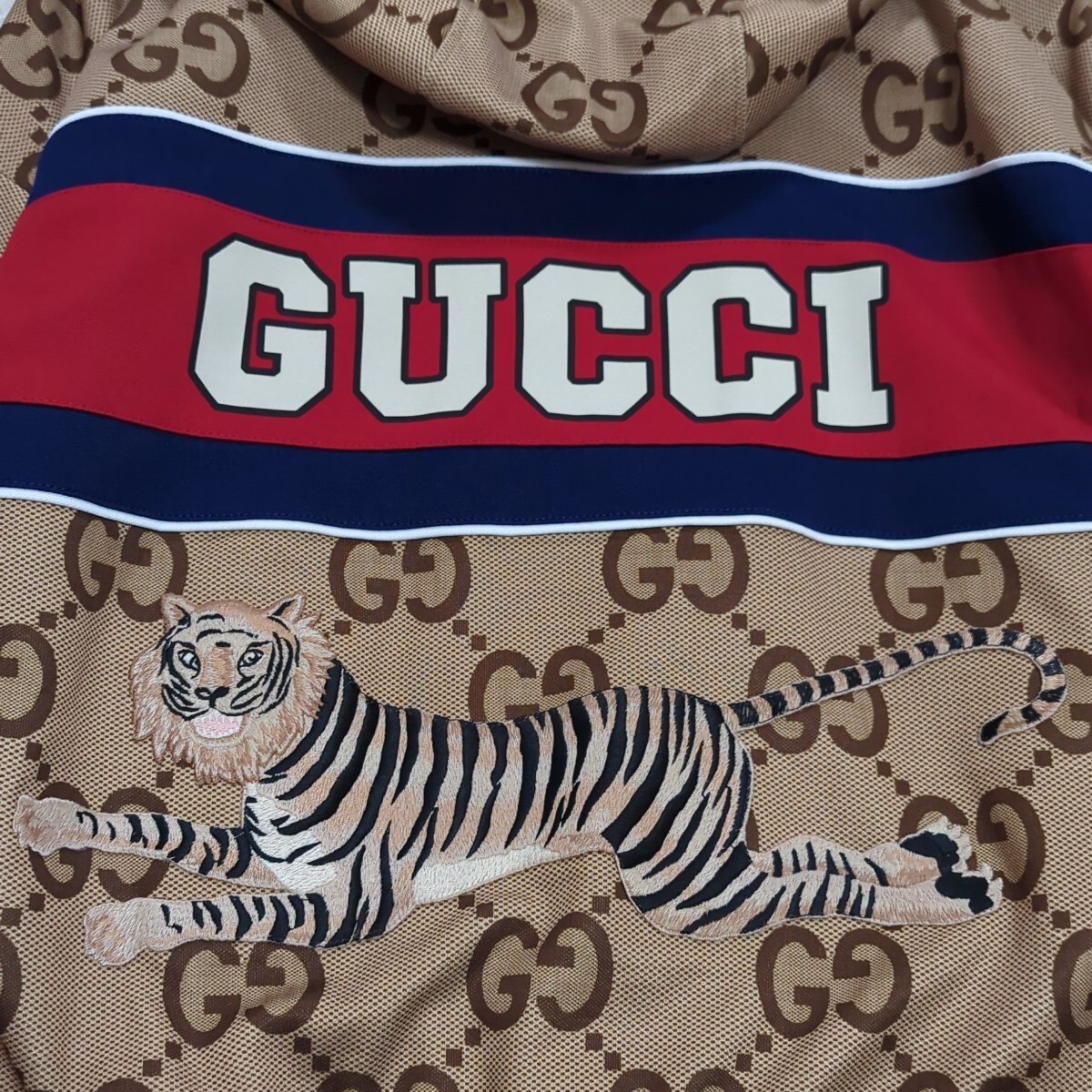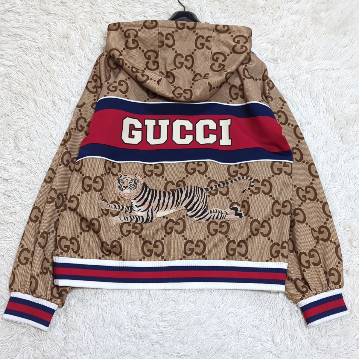 ジャンボGG タイガー ジャージー ジップアップフーディ パーカー 総柄 トラ 刺繍 ダブルジップ 背面ロゴ