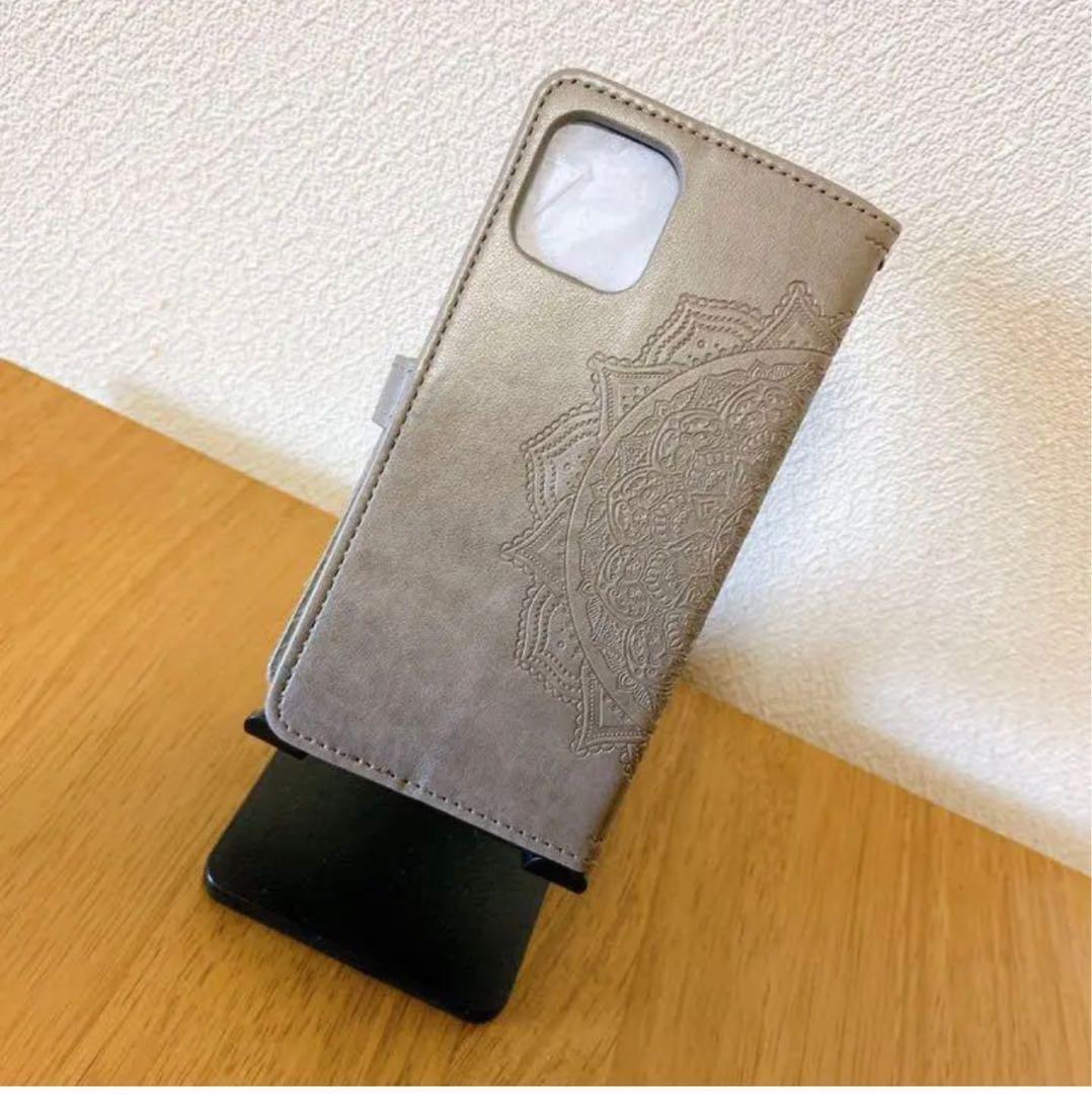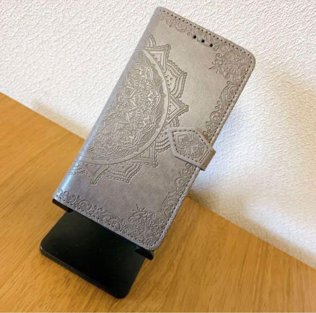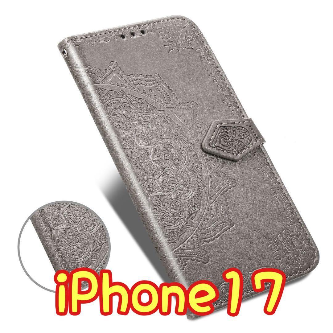 エンボス加工スマホケース 手帳型 iPhone17 グレー