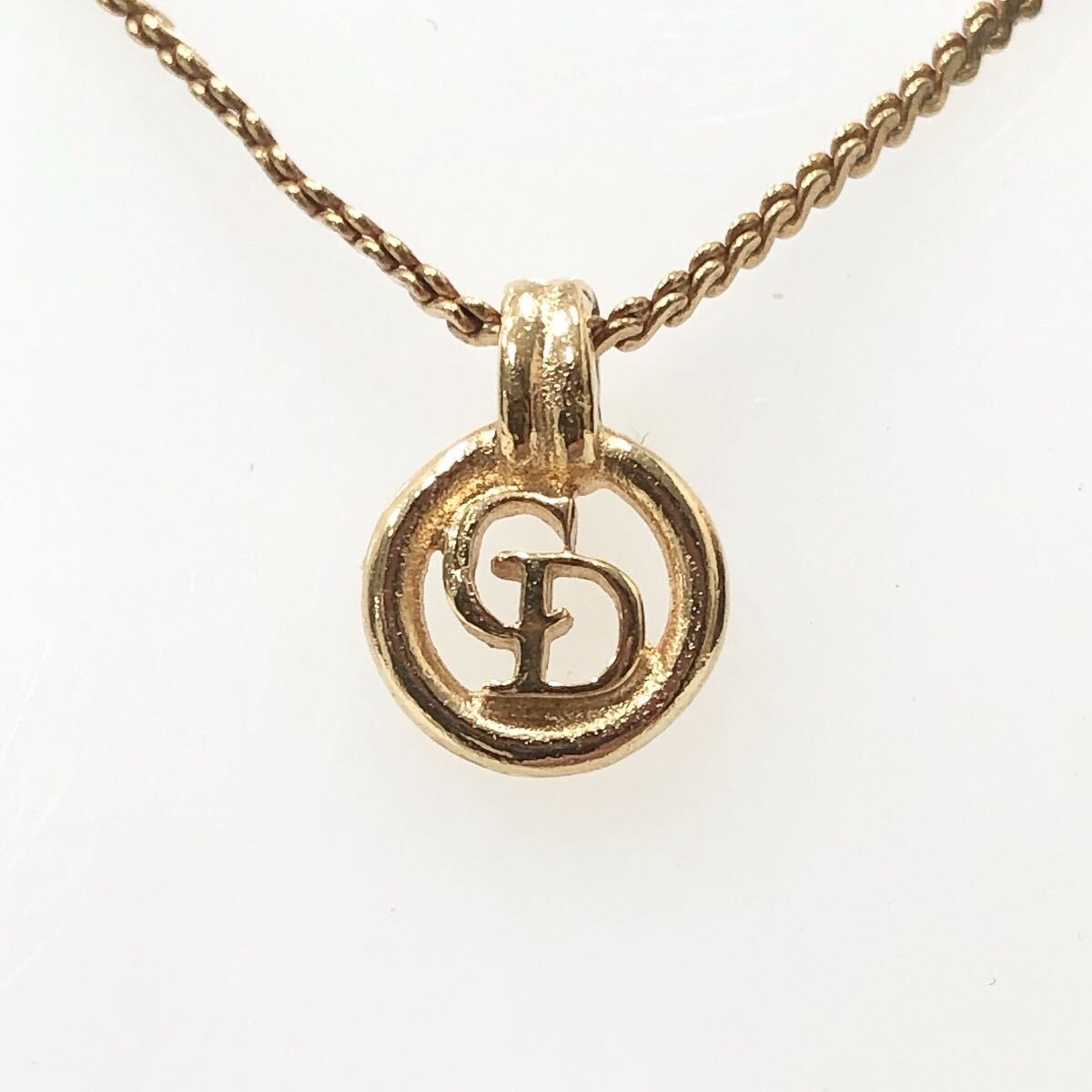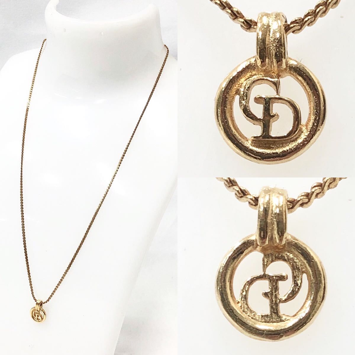 R尼1106 正規品 Christian Dior ディオール CDロゴ ロゴサークル ゴールドカラー トップ:1.3×0.9cm チェーン全長約44.5cm 3.5g
