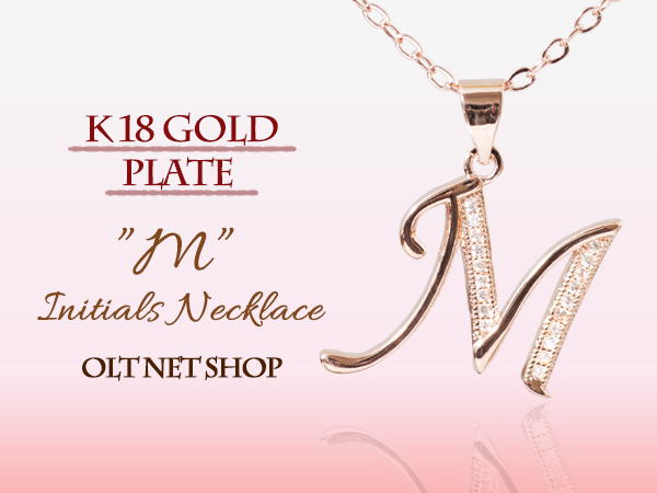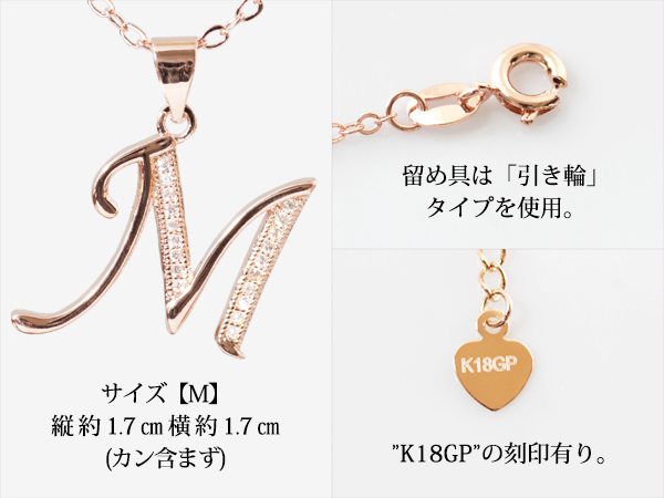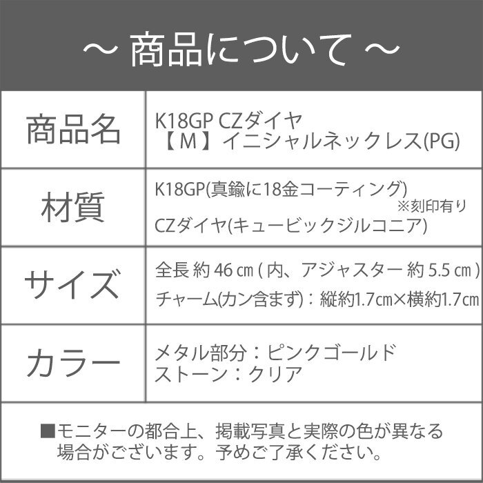 M イニシャル ネックレス レディース ピンクゴールド 18金 18kコーティング 英語 頭文字 / K18GP CZダイヤ 【 M 】イニシャルネックレス