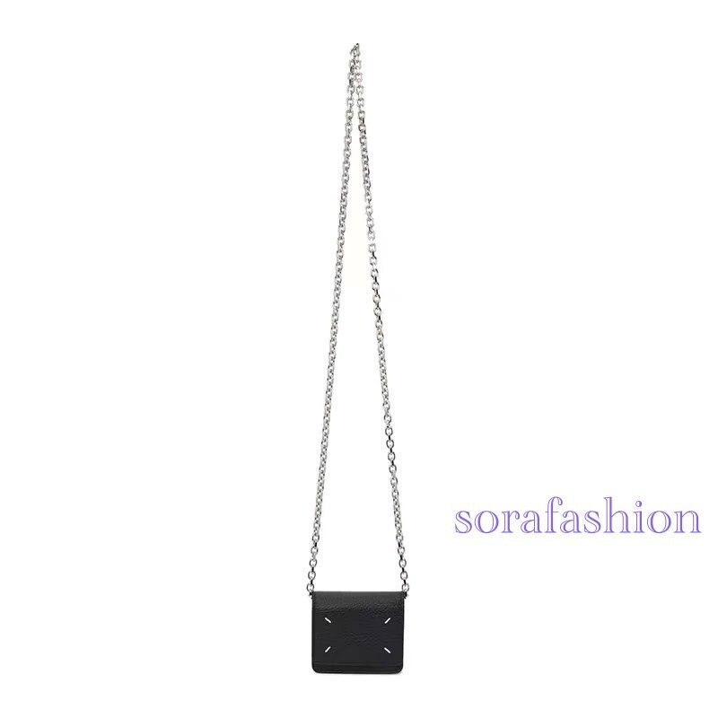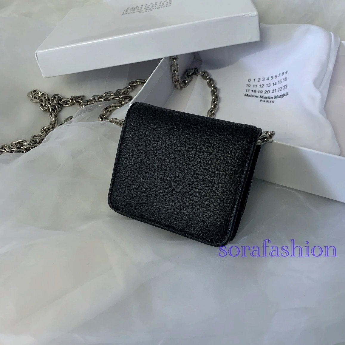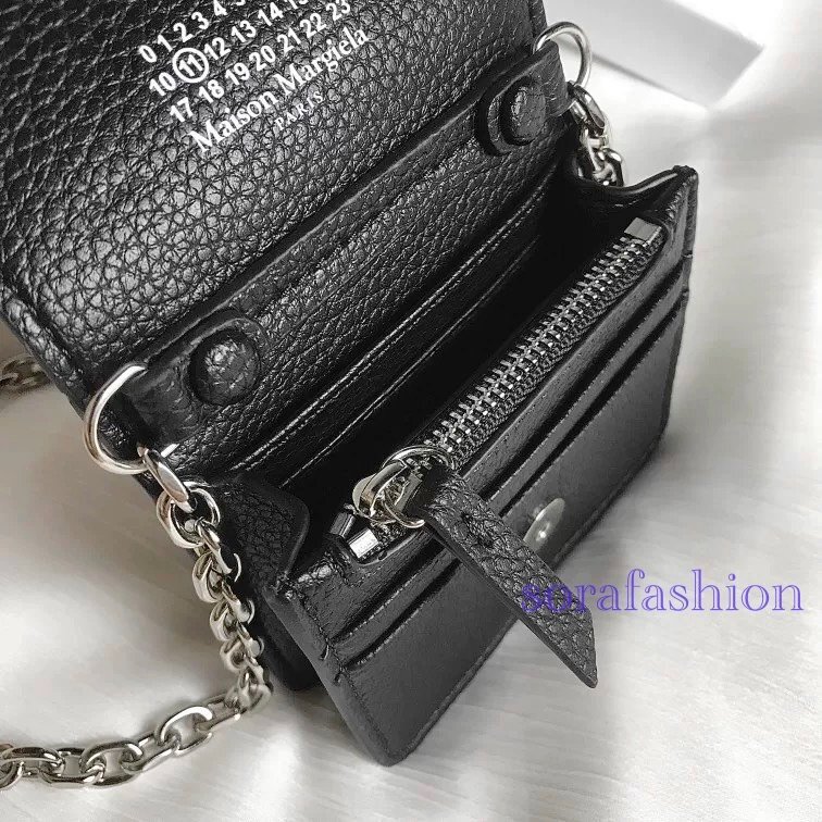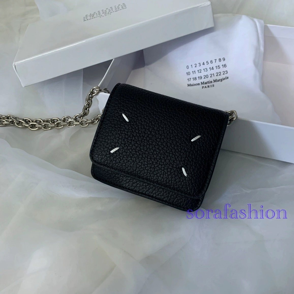 Maison Margiela レディースショルダーバッグ ミニバッグ ポシェット 二つ折り財布 斜め掛け 鞄 本革 ブラック チェーンバッグ
