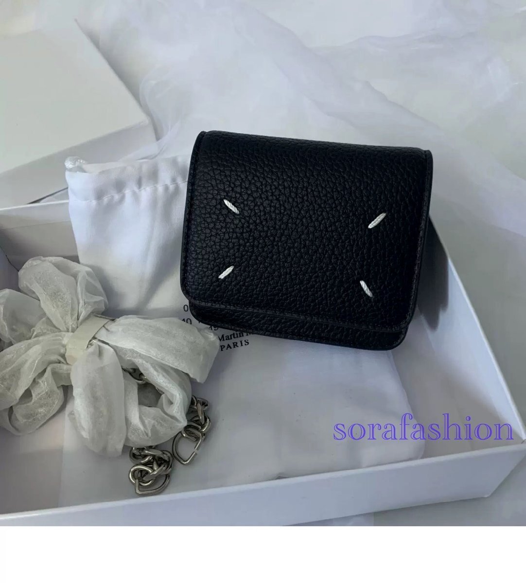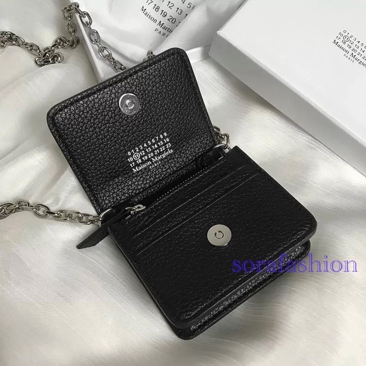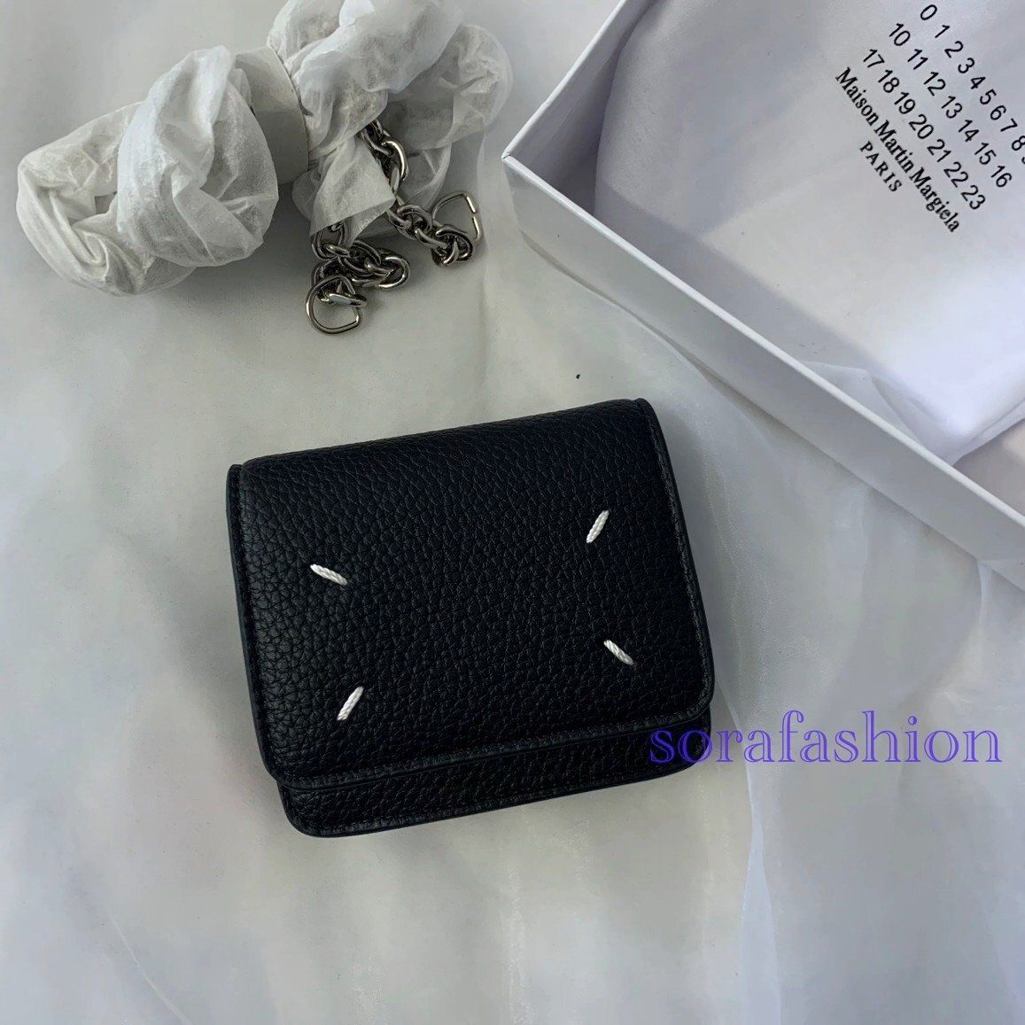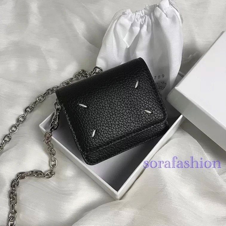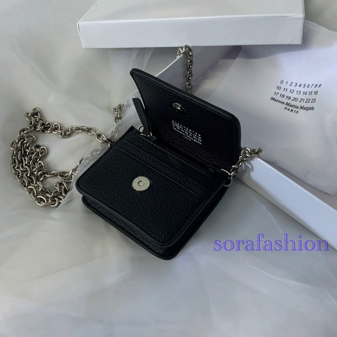 Maison Margiela レディースショルダーバッグ ミニバッグ ポシェット 二つ折り財布 斜め掛け 鞄 本革 ブラック チェーンバッグ