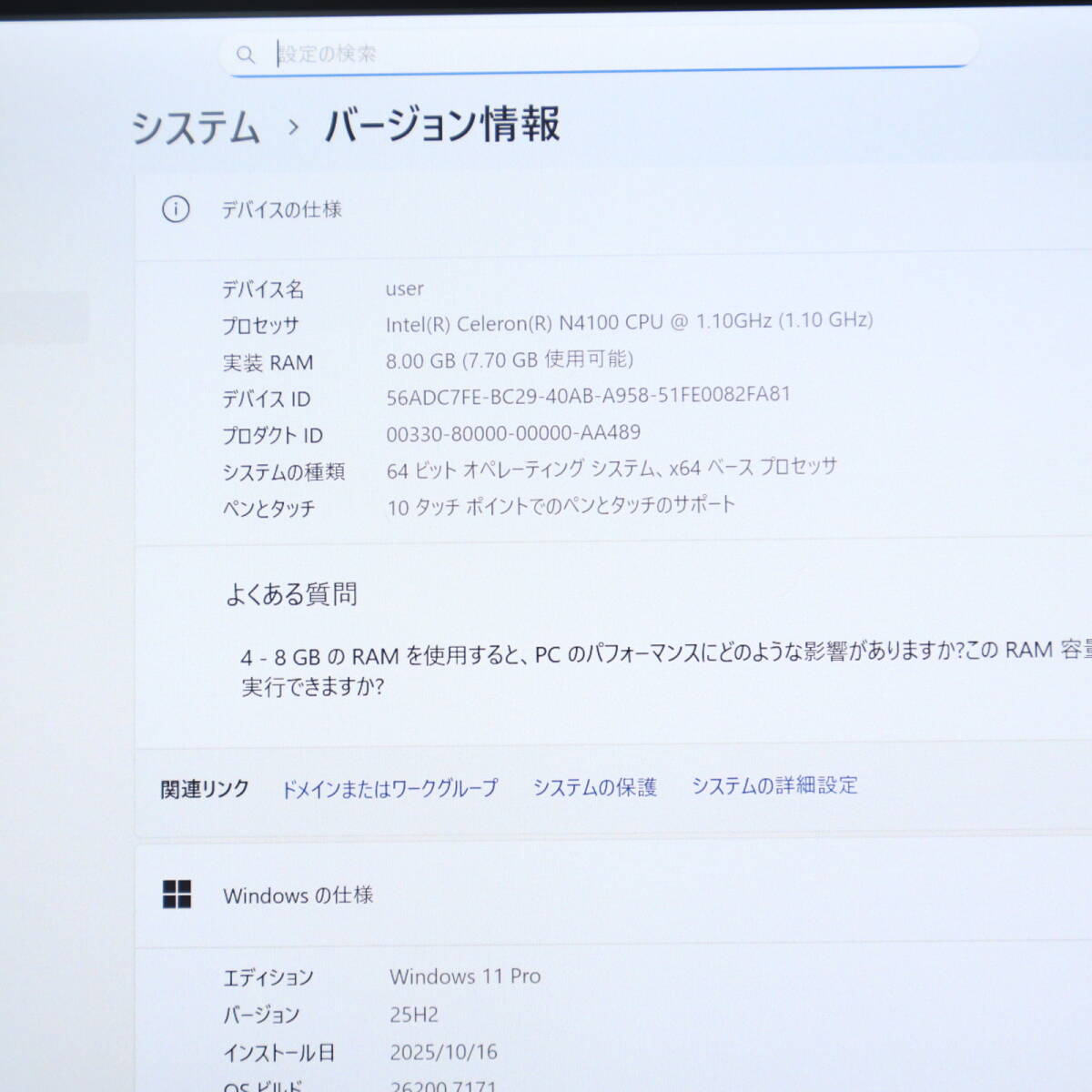 ★防水★完動品 SSD128GB メモリ8GB★Q509/VE Webカメラ TypeC Celeron N4100 Win11 MS Office 中古品 ノートパソコン★P94995