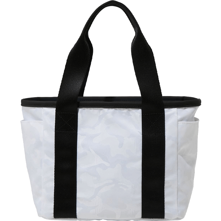 【商品特徴】 ラウンド中での使いやすさを研究したデザインのカートバッグ。 持ち手が長めで移動中での持ちやすさも考慮した設計。 無地調のワントーン迷彩柄ジャカード素材がスマートな高級感を演出するとともに、赤いロゴのシリコンワッペンがアクセント。 アウトポケットがついているので小物の出し入れも便利な使い勝手の良いデザインです。 【商品詳細】 ●状態:新品・未使用品 ●品番:AUF7023 ●定価:¥11,000(税込) ●素材:ジャカードツイル(ポリエステル)、別布(合成皮革) ●サイズ:H20×W24×D13cm ●カラー:ホワイト ※撮影時の光量の具合や、ご覧いただいております画面環境によりまして、実際の商品と若干色味が違う場合がございます。 ※商品詳細のスペック値はメーカー表記の数値となりますが、個体差による若干の公差がございます。