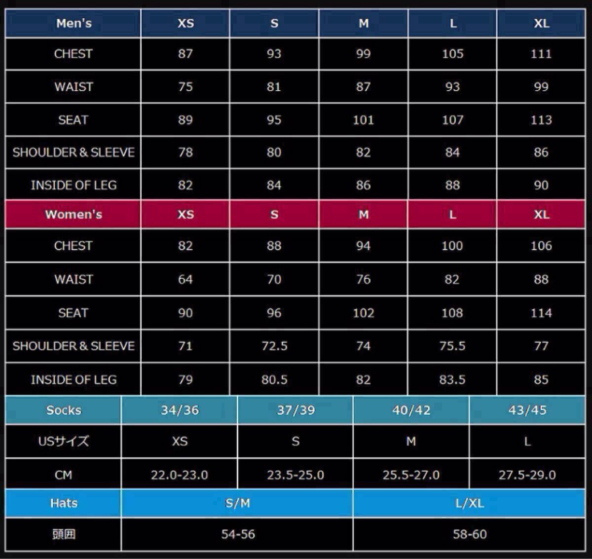 例えば同様のスポーツアンダーウェアで日本Lサイズが合う方は、CRAFTのアンダーウェアのMサイズをお選びいただくと、ほぼフィットするでしょう。