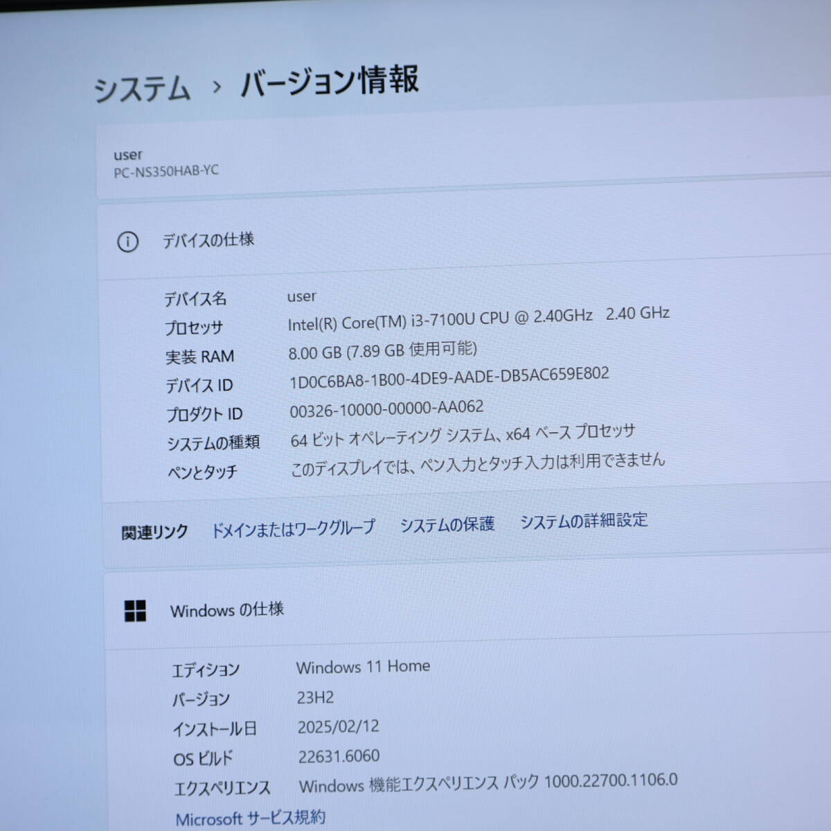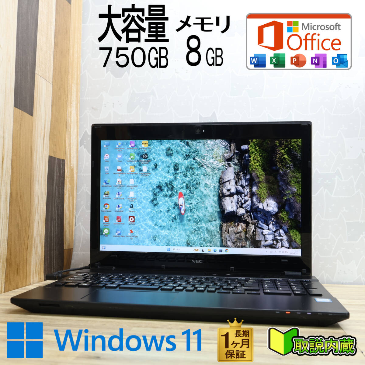 ★現状品 高性能7世代i3!大容量750GB メモリ8GB★NS350H Core i3-7100U Webカメラ Win11 MS Office 中古品 ノートパソコン★P94239