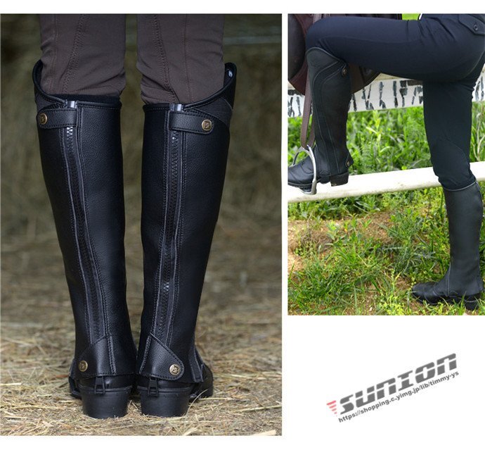 乗馬用 ハーフチャップス 合皮 人工皮革 乗馬用品 馬具 乗馬チャップス ゲートル プロテクター ガード 男女兼用 レディース メ
