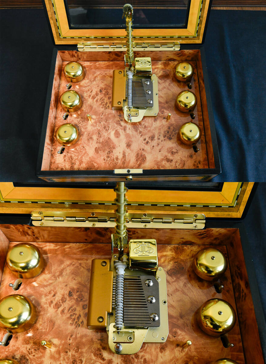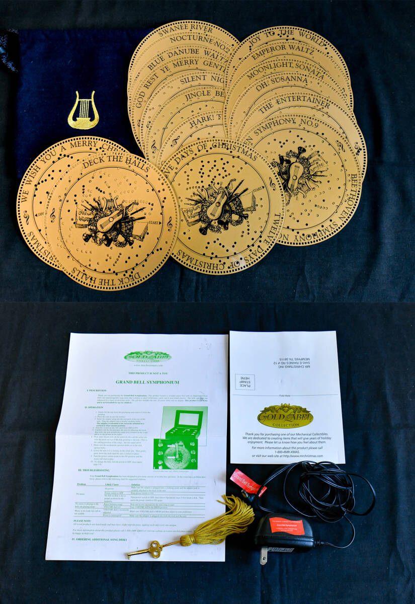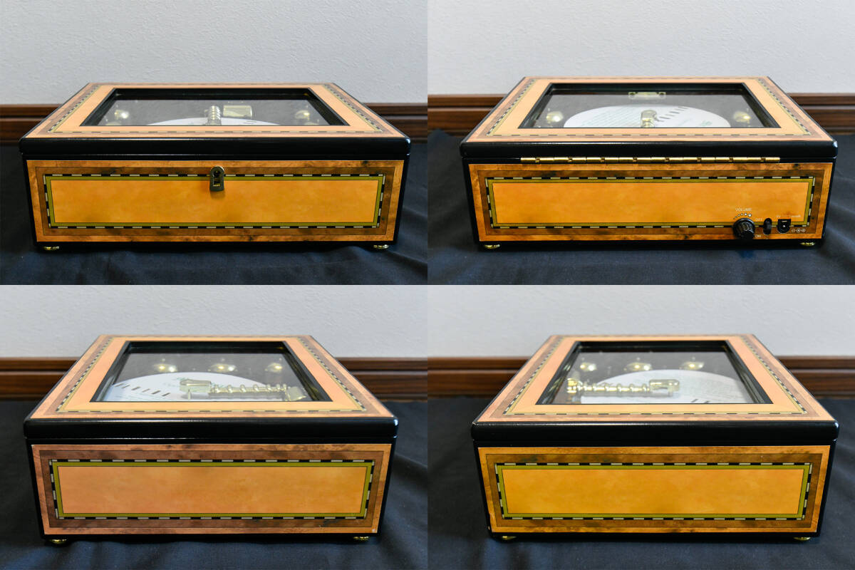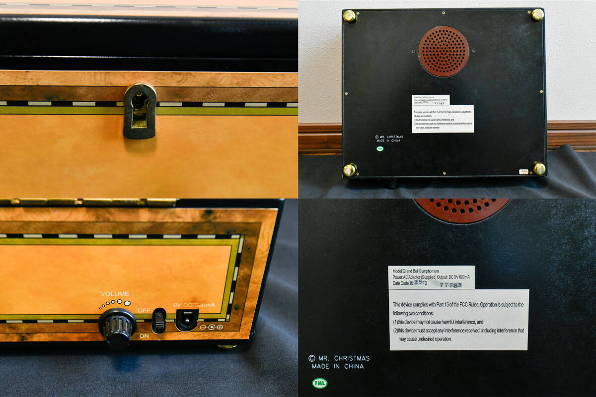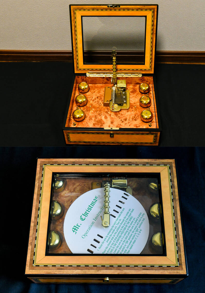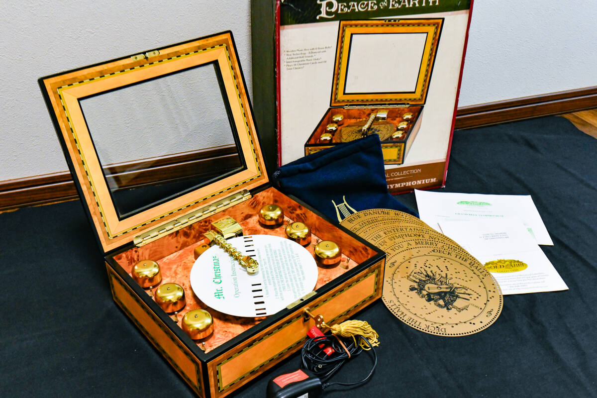 ご覧いただきありがとうございます、 『ミスタークリスマス グランベル シンフォニウム』6ベル 16ディスクの出品になります。 【動作確認動画はこちらから】 ミスタークリスマスの中でも『上位モデル』のミュージックボックスになります。 本体からは、繊細で上質なデザインとクラシックな雰囲気が感じられ、音楽を楽しむだけでなく、お部屋のインテリアとしても存在感があります。 ヤフオクでも過去にほぼ出品されていない、極めて入手困難なお品になっており次回いつ出品できるか分からない、在庫限定のお品になっておりますのでぜひお早めにご入札ください。 【寸法】 ●横幅 30㎝ ●奥行 25㎝ ●高さ 9㎝ 【状態】 ●本体は目立った傷や汚れのない大変綺麗なお品になっております ●外箱は経年、使用による擦れ、汚れがあります ●箱収納時に本体を固定する発泡スチロールは付いていません ●ボリューム調整がついておりますが、音の大きさに大きな変化を感じられません |