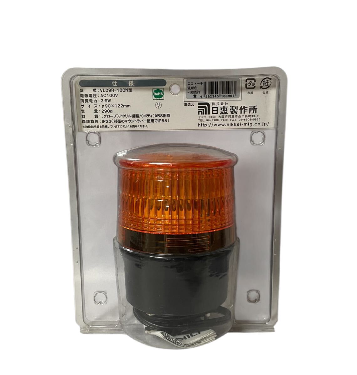 LED回転灯φ90 ニコトーチ90 黄 AC100V 日惠製作所 VL09R-100NPY (61-9996-23)